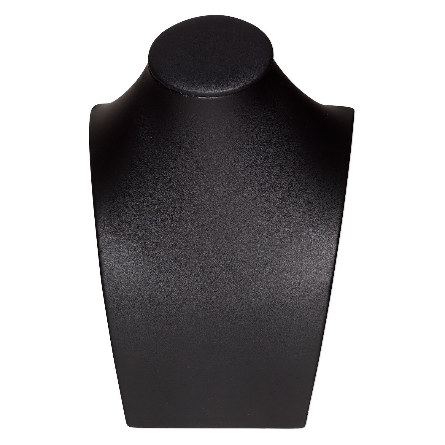 Upright décolleté-style leatherette necklace display in a black color. Standing 7 inches in height, its compact design makes it ideal for smaller display cases and makes it easy for transport. VELCRO® tab on the back makes it easy to secure necklaces to the display.