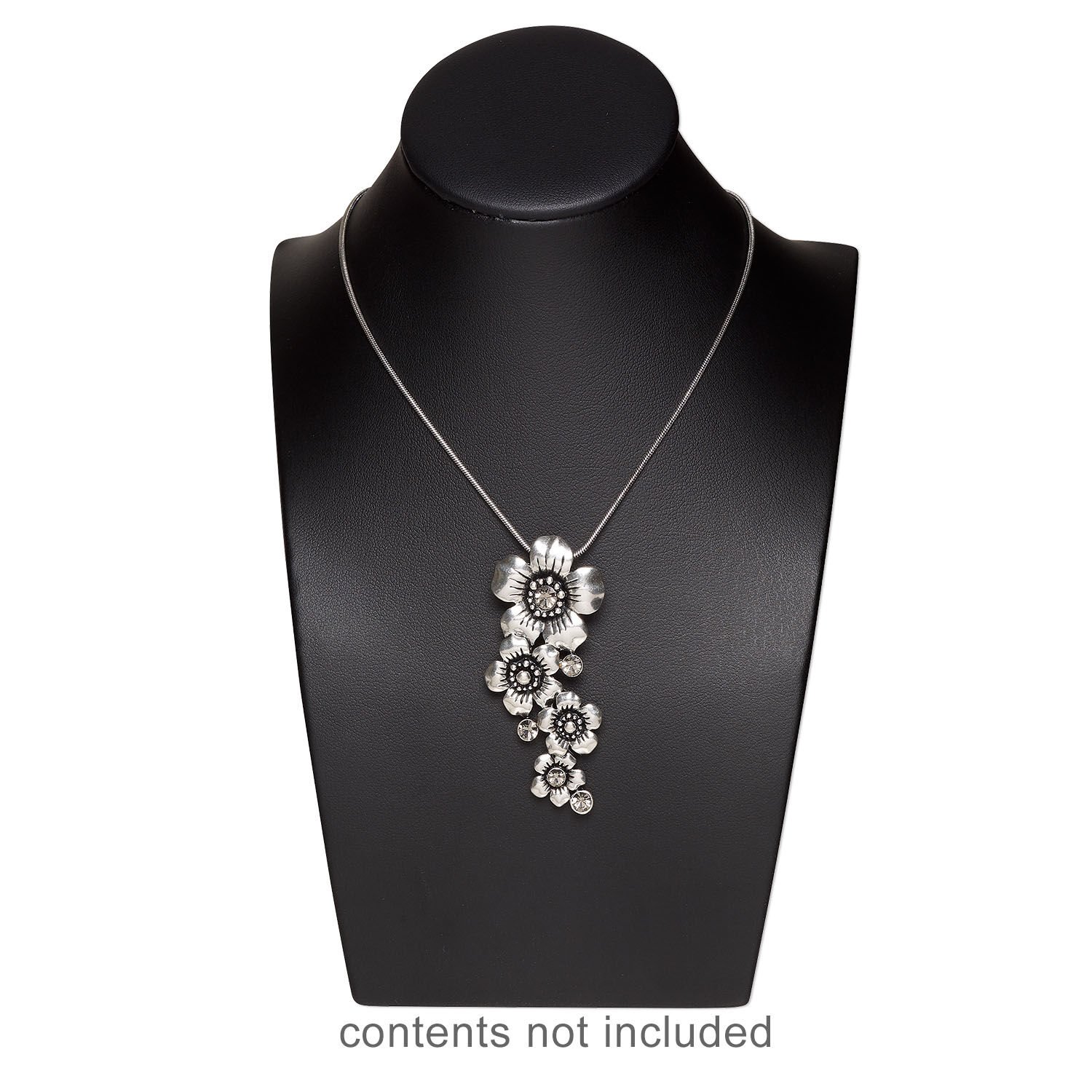 Display, necklace, leather, black, 7 x 5 x 3-1/4 inches with VELCRO® tab on back. Sold individually.