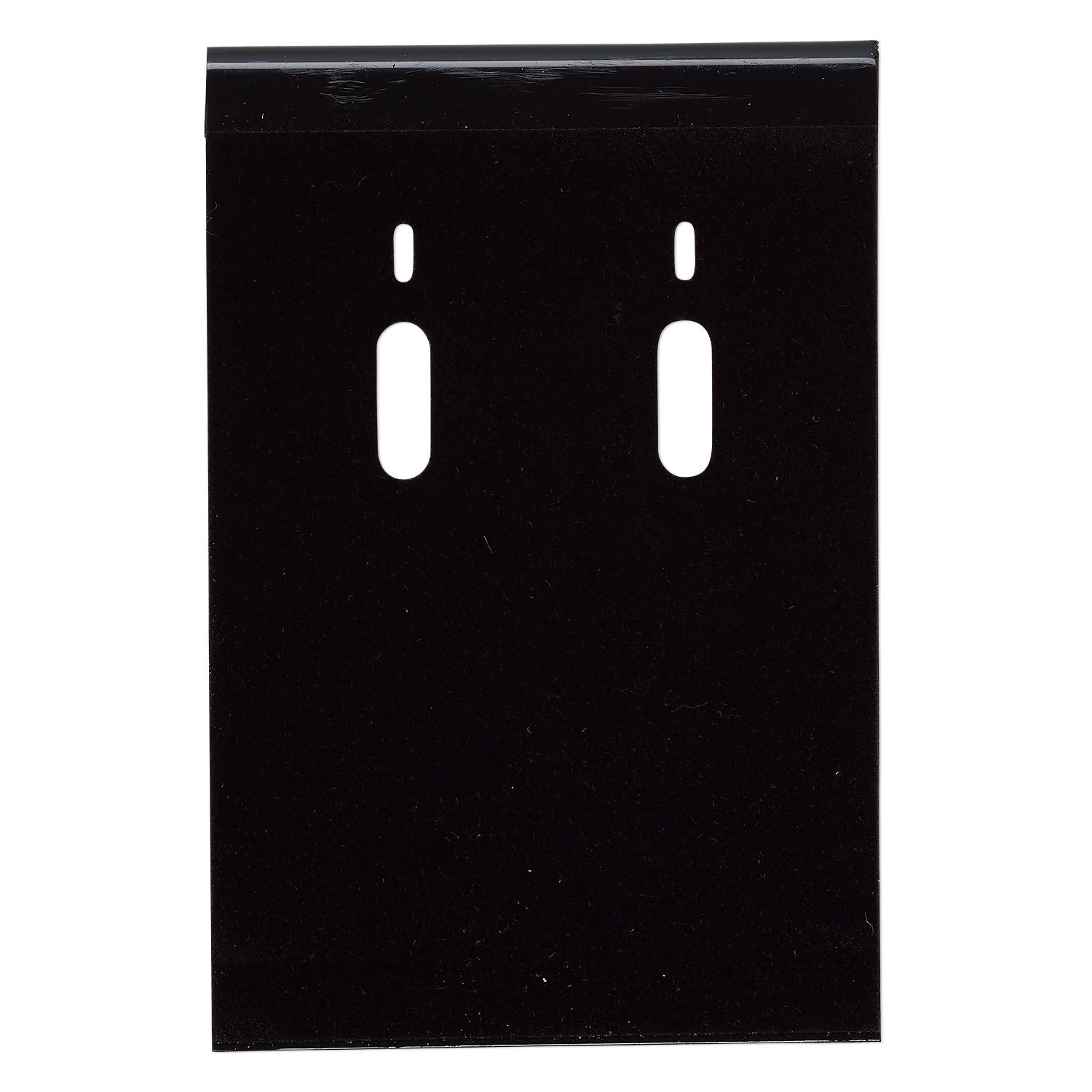 Earring card, flocked plastic, black, 3x2-inch rectangle, for leverback earrings. Sold per pkg of 25.