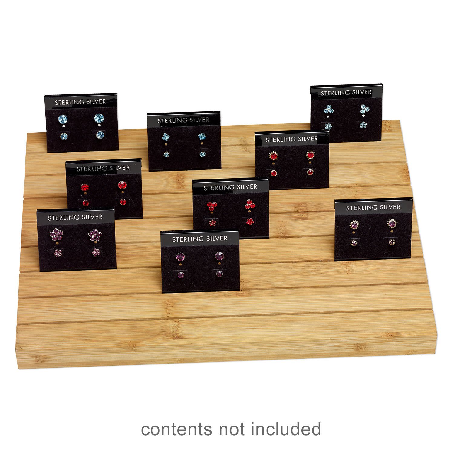 Display, earring card holder, bamboo, 2 x 10-5/8 x 8-1/4 inch inclined. Sold individually.