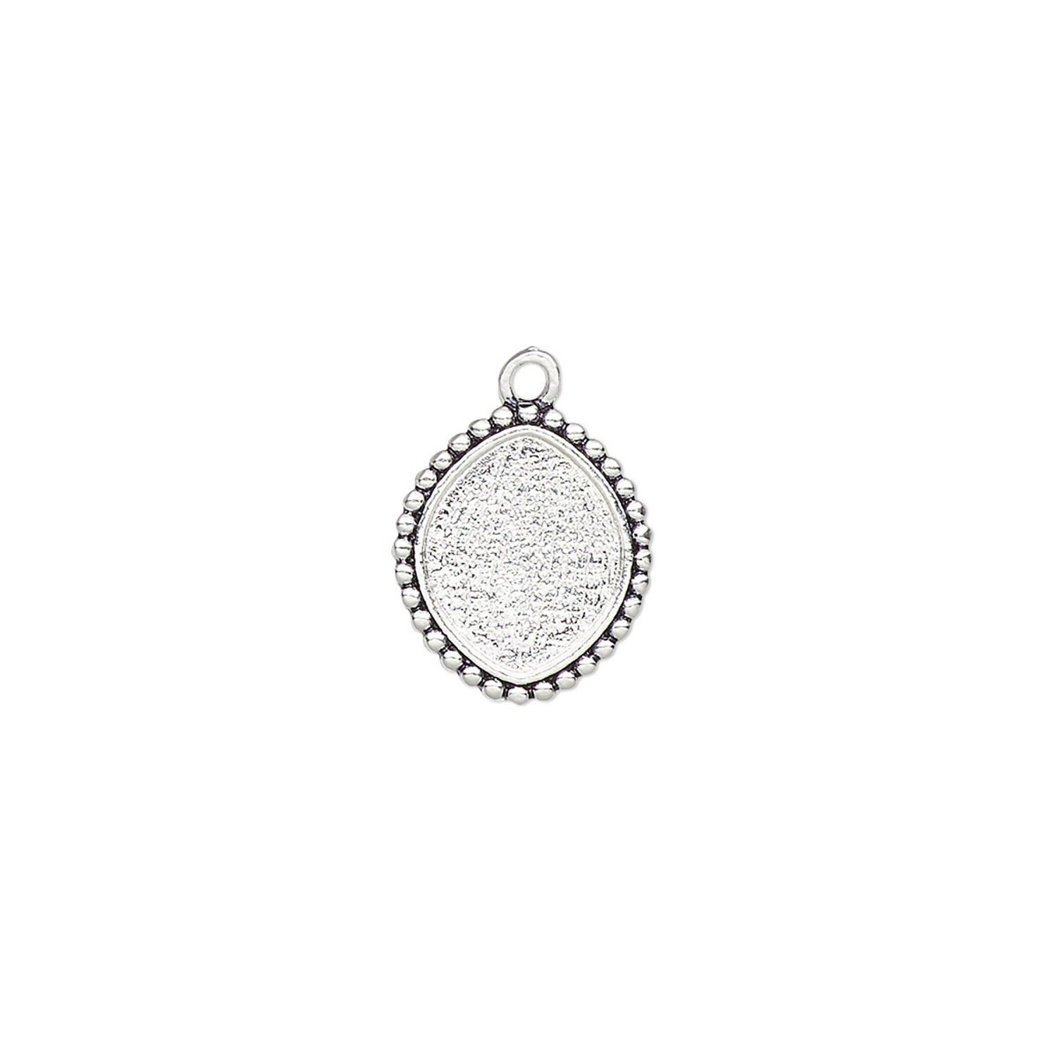 Drop, antique silver-plated brass, 12.5x11mm marquise with beaded edge and 10x8mm pure leaf setting. Sold individually.