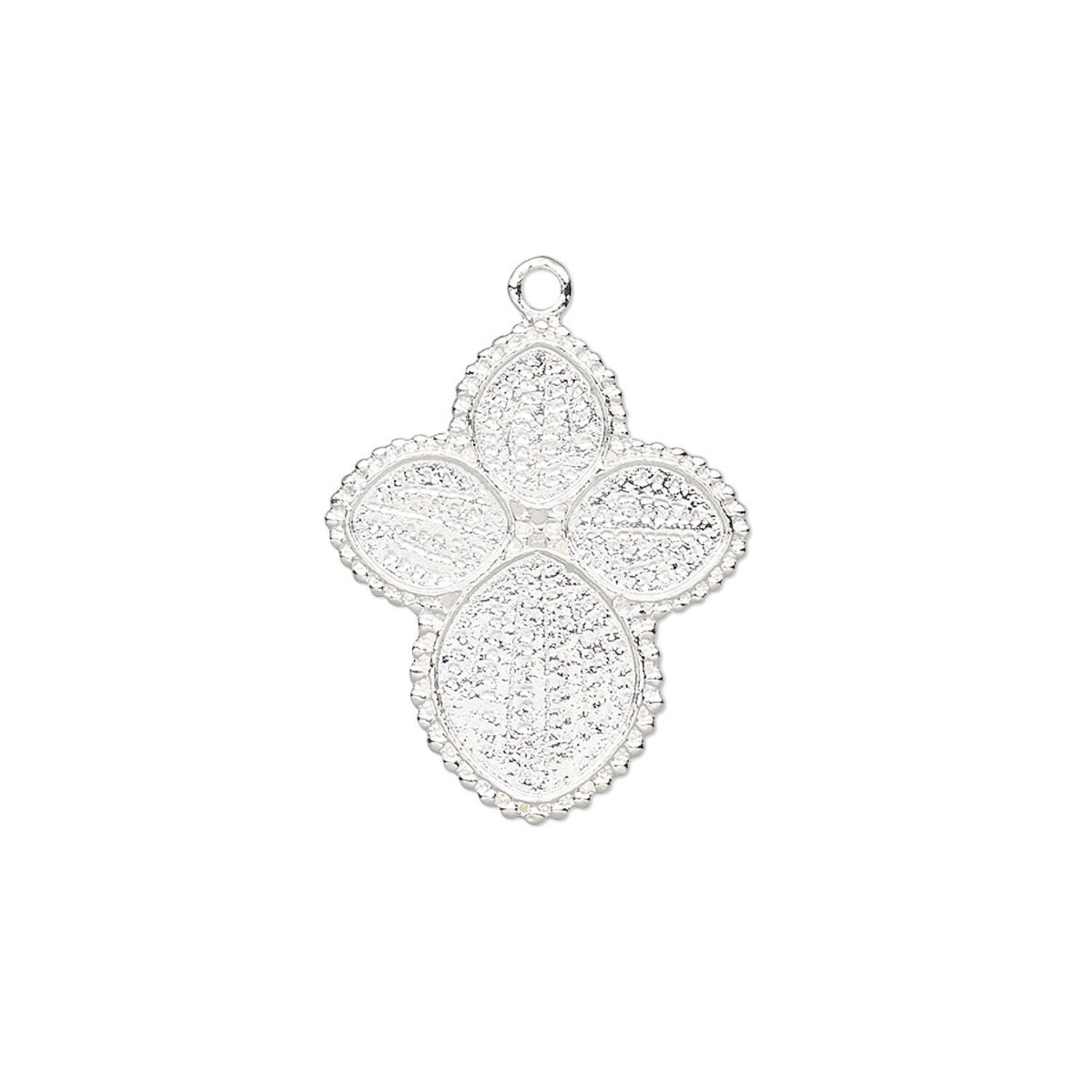Drop, silver-plated brass, 20x17mm with (1) 10x8mm and (3) 6x4.8mm pure leaf settings. Sold individually.
