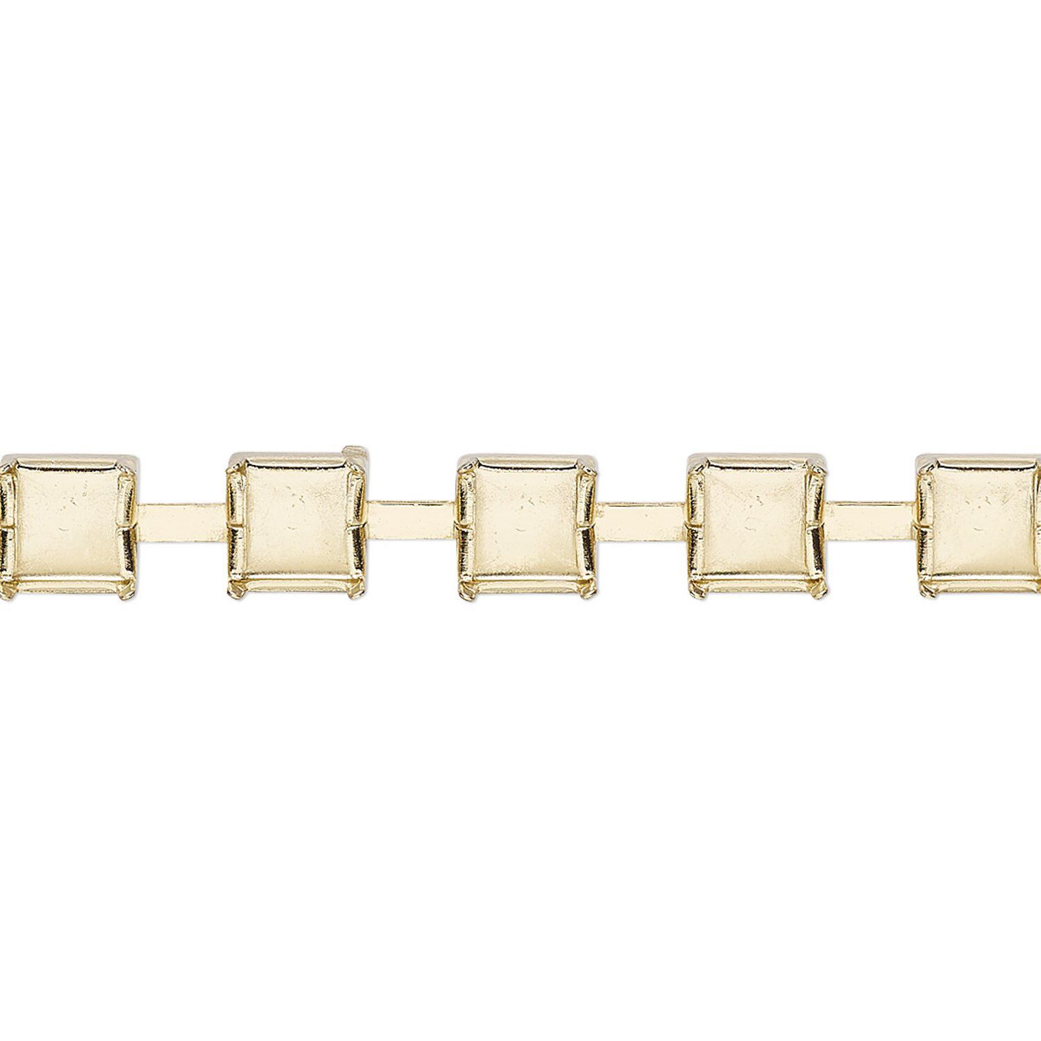 Cupchain, gold-finished brass, 6mm wide with (95) SS29 settings and (10) 7mm connectors. Sold per pkg of 3 feet.