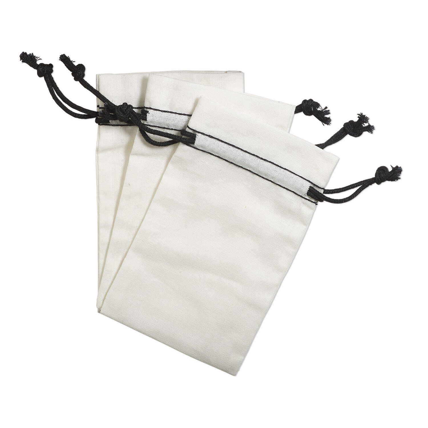 Cotton gift pouches feature a plain surface ideal for customization. The hand-sewn pouches have drawstring cinch-top closures. Sizes, shapes and colors may vary with handcrafted items.