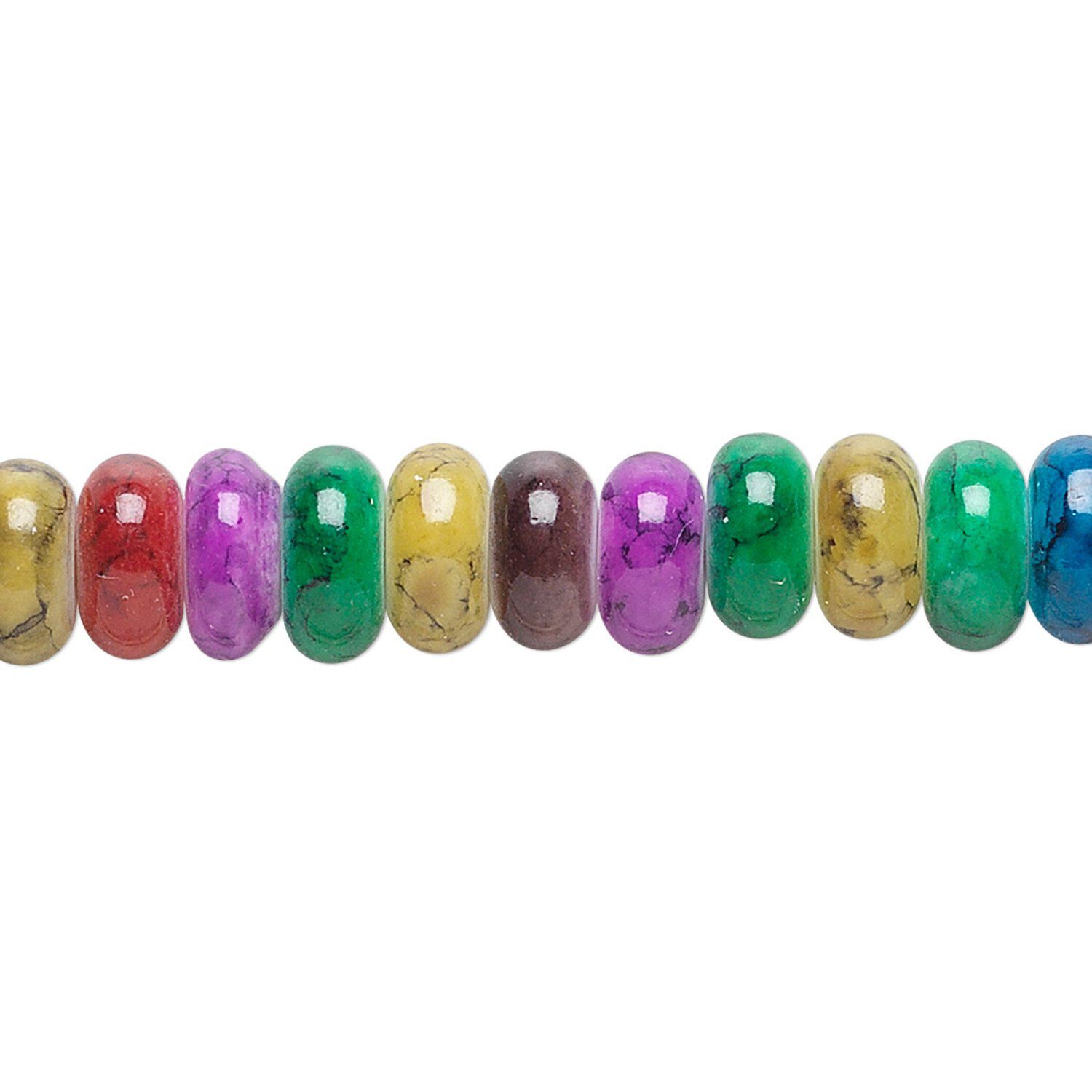 Assorted glass beads feature a marbleized pattern in rich, vibrant jewel tones to enhance an array of designs. Colors can include red, blue, green, purple, yellow and more. Color combinations may vary from strand to strand.
