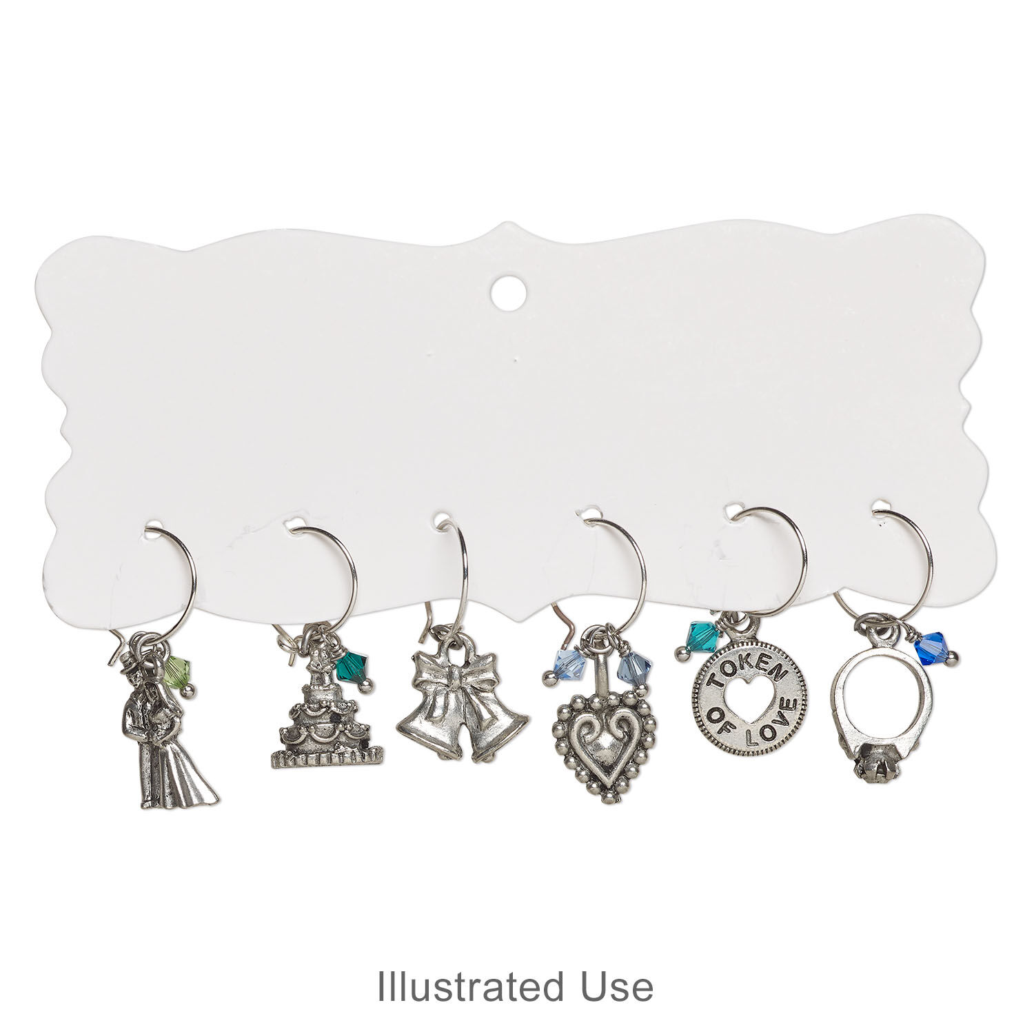 This card is perfect for displaying and selling up to six handmade wine charms. Its simple paper construction offers a sturdy, eco-friendly alternative to plastic and can be customized on one side with a stamp, sticker, paints or other materials. Add an adhesive display card to easily hang from an earring holder or rotating display.