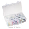 Organizer, acrylic, clear and white, 9 x 6-1/4 x 2 inches with (64) 45x25x11mm rectangle boxes and snap top. Sold per 65-piece set.