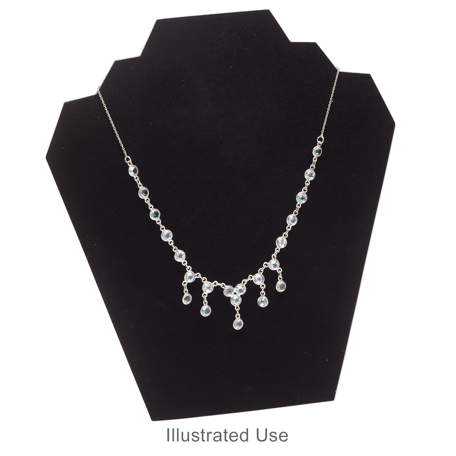 This stand-up easel display features two notches for displaying necklaces or chains. The compact design saves space compared to three-dimensional stands, and the locking easel offers security for craft fairs or trade shows. This can be easily altered to display earrings as well. Suitable for light to medium-weight designs.