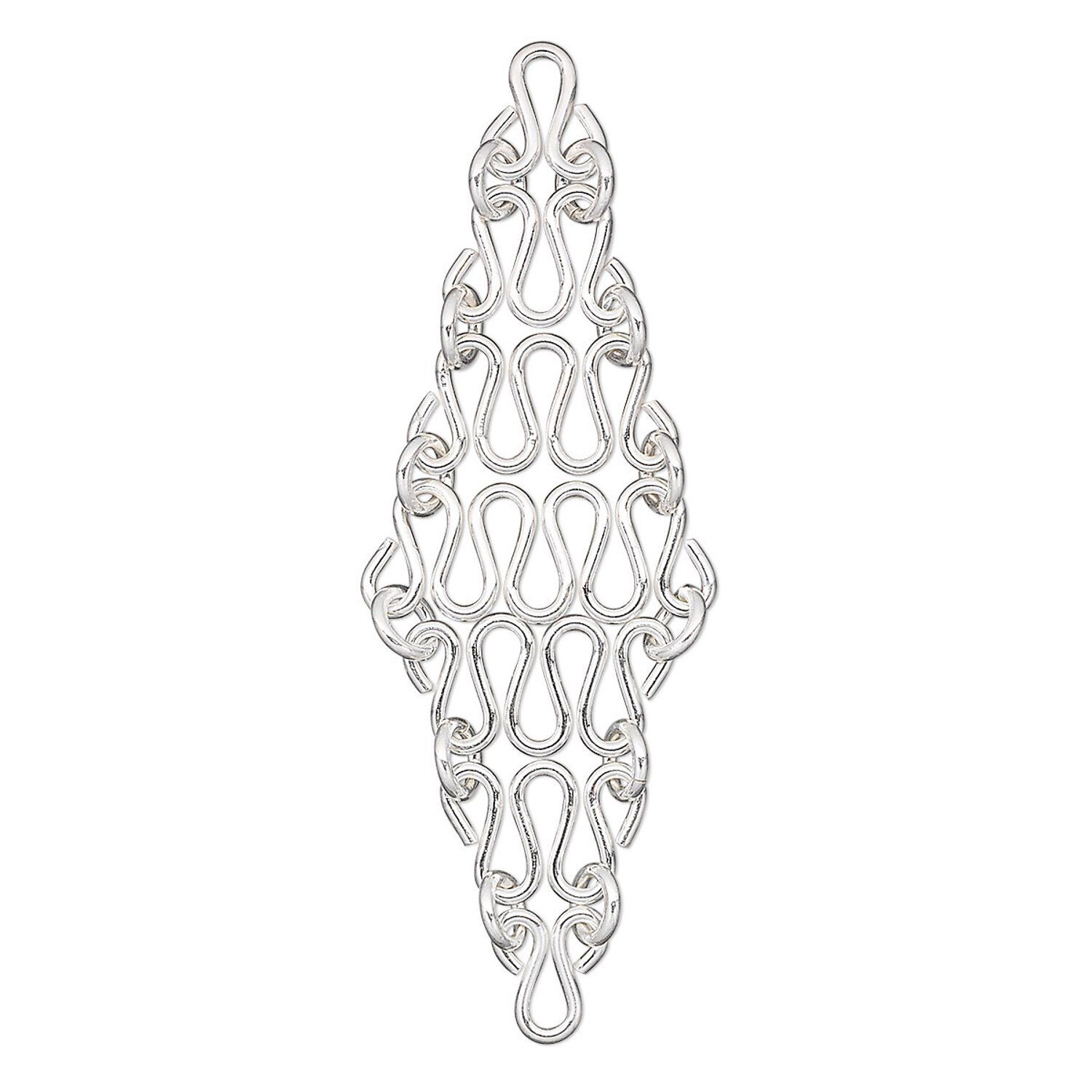 Focal, sterling silver, 50x15mm diamond with squiggly chain design. Sold per pkg of 2.