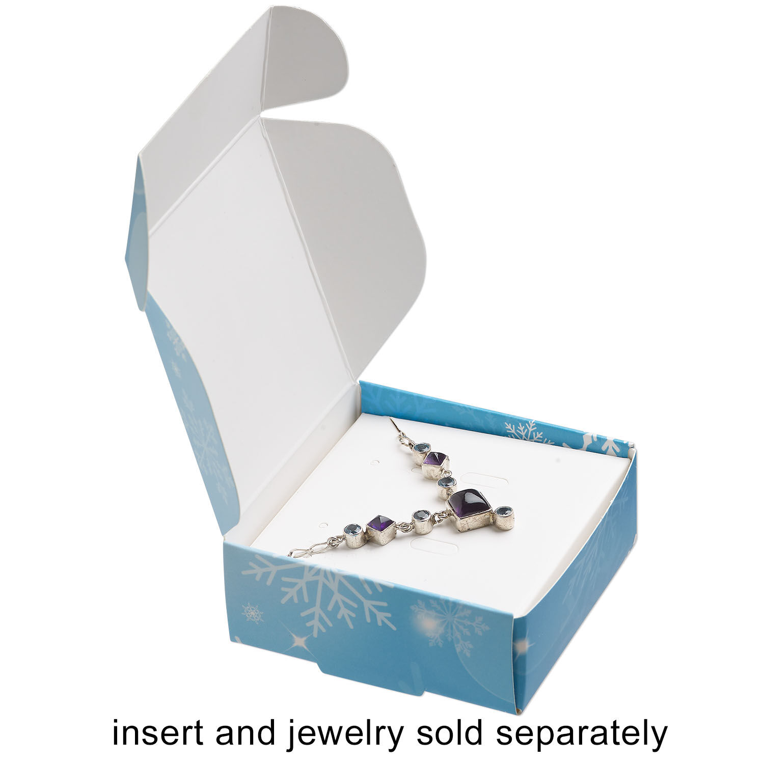 Exclusively from Fire Mountain Gems and Beads, these printed gift boxes are fun options for gift giving and displays alike. Flat design travels compactly and takes up little transport or storage space. Simply assemble when ready for use and fill them with the specially designed black or white paper inserts—or with padding of your choice.