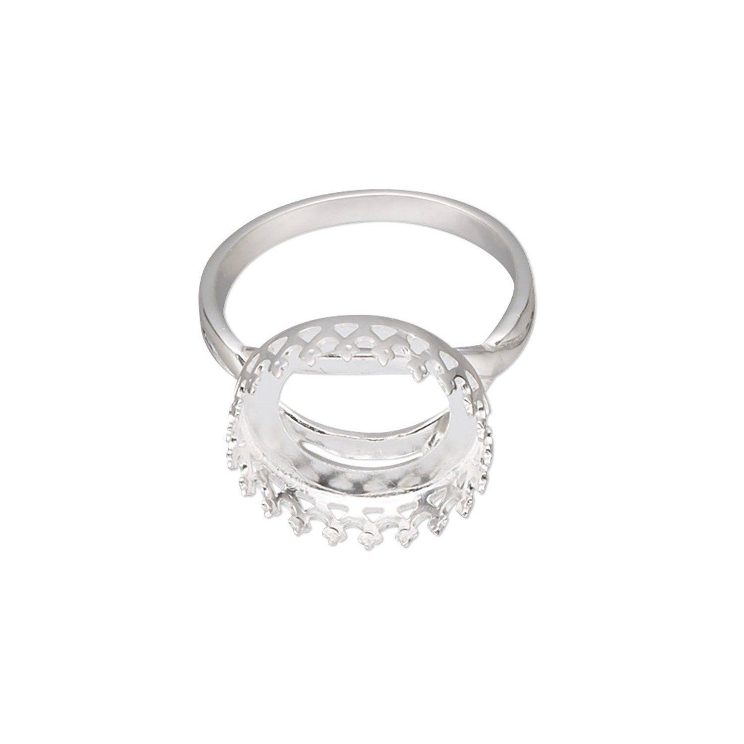 Ring with custom-designed mounting exclusive to Fire Mountain Gems and Beads is designed to fit 14mm round cabochons. Bezel settings let you customize your jewelry with stones set using bezel pusher and roller for a professional look. Anti-tarnish coating preserves and protects the shine of sterling silver.