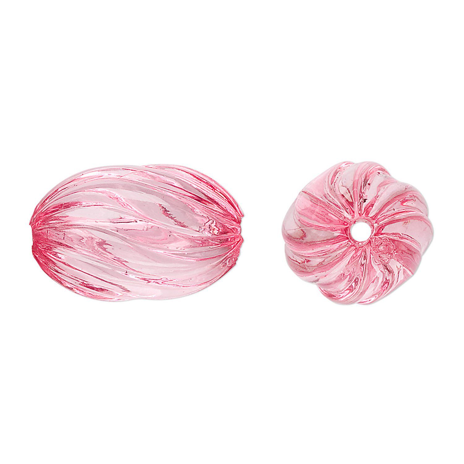 Bead, acrylic, pink, 20x13mm fluted oval. Sold per 100-gram pkg, approximately 50 beads.