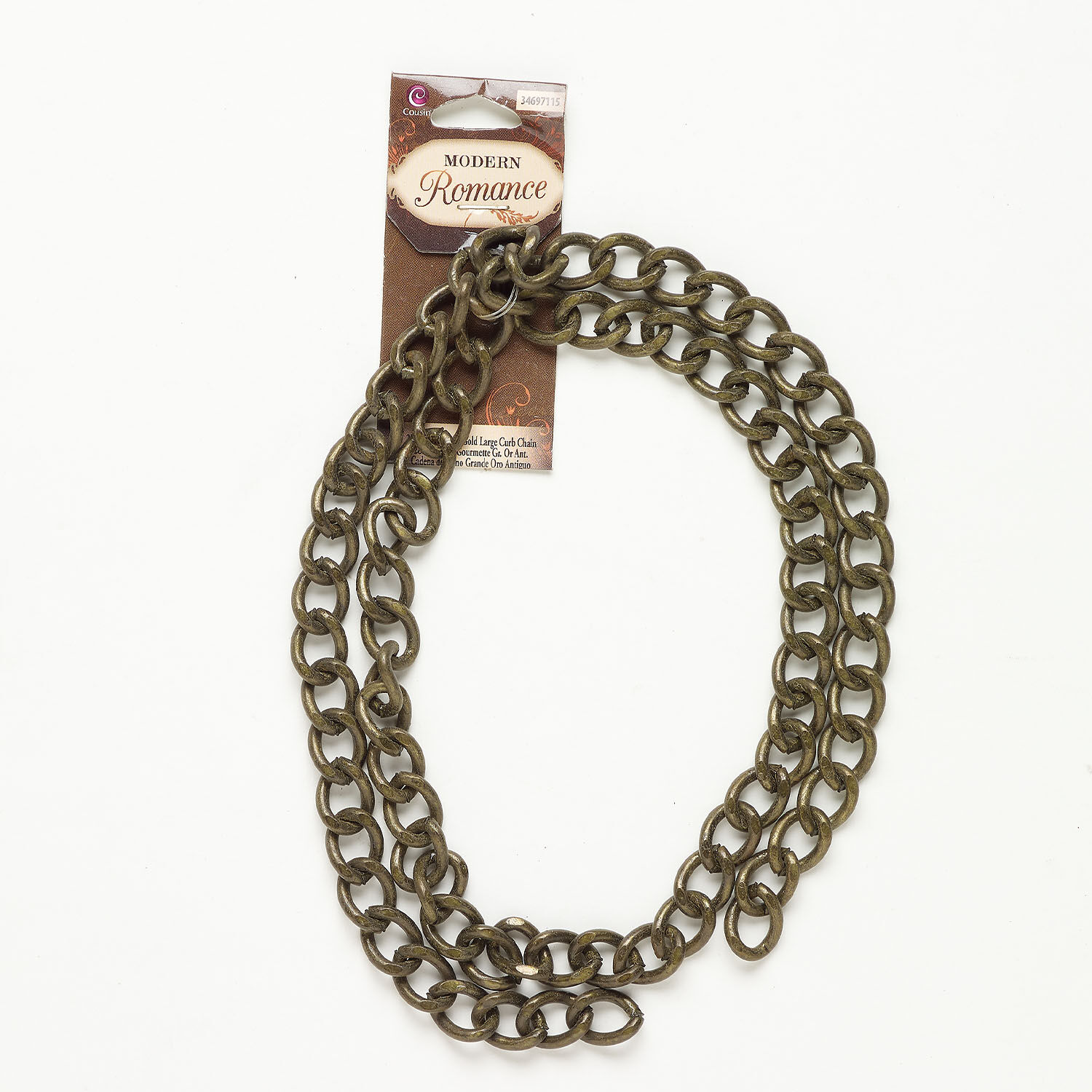 Chain 1pkg1, antique brass-finished steel, 10.4mm curb, 28 inches.