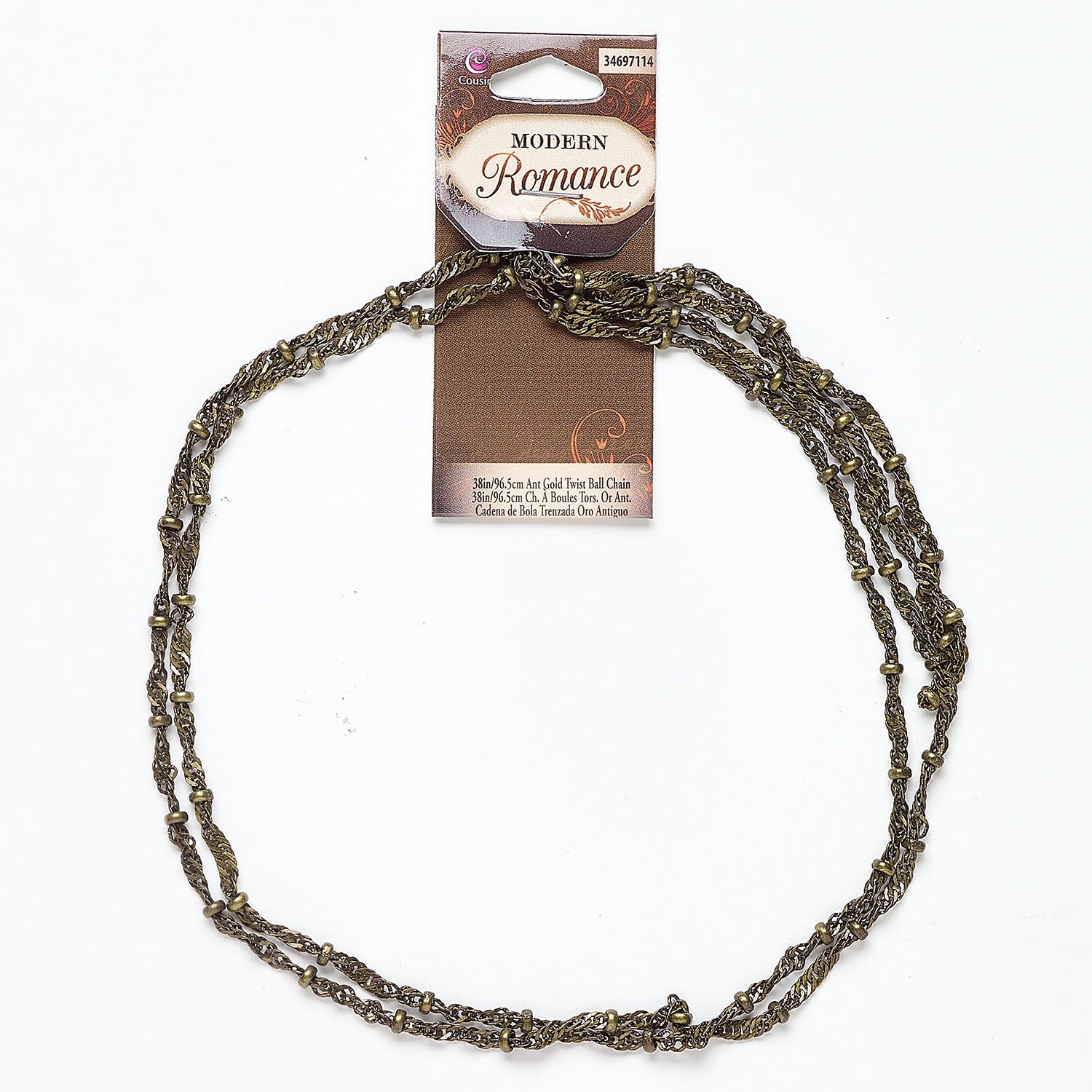 Chain 1pkg1, antique brass-finished steel, 3.6mm twisted Singapore chain with rondelle, 38 inches.
