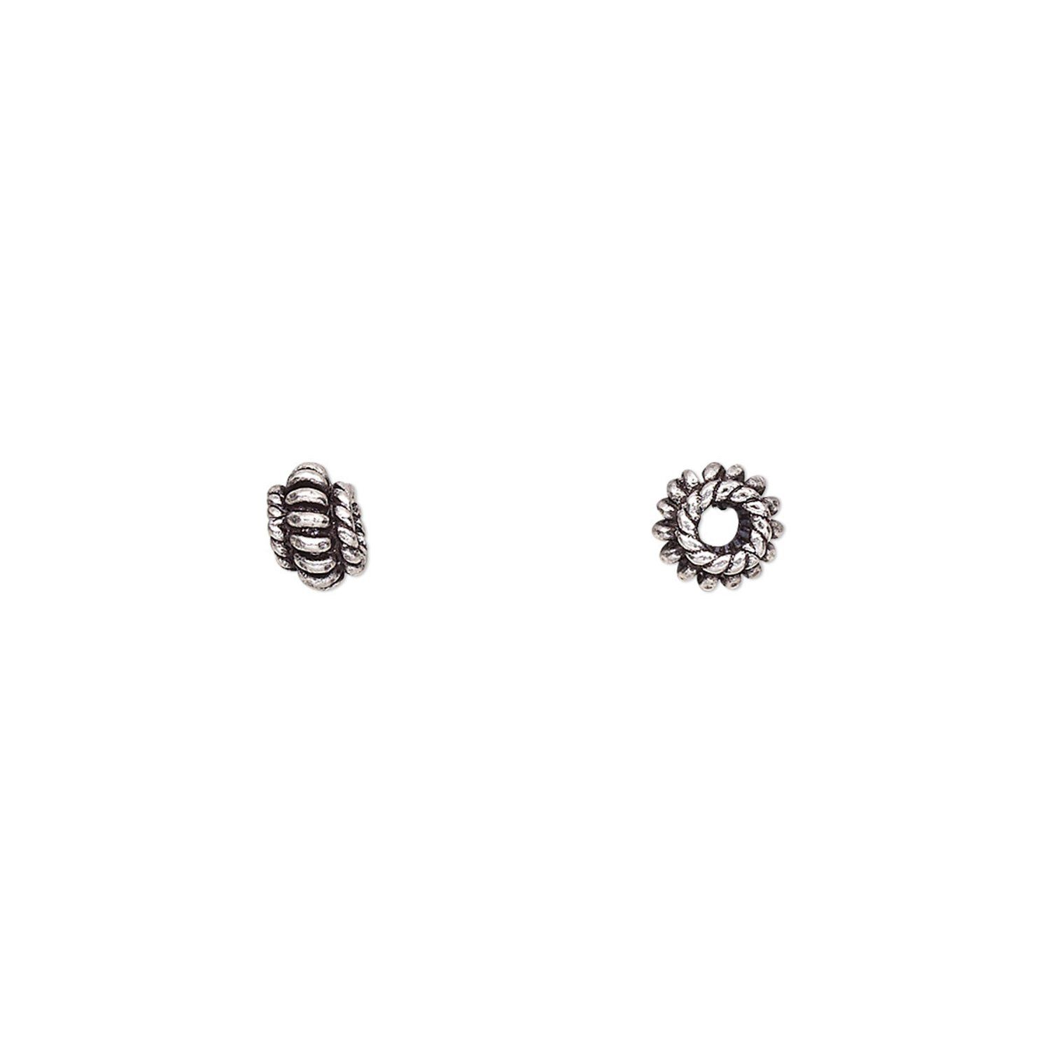 Bead, antiqued sterling silver, 5x4mm fluted rondelle. Sold per pkg of 15.