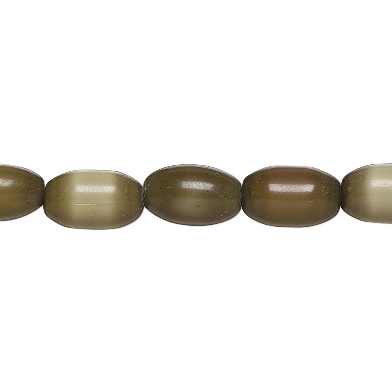 Bead, cat's eye glass (fiber optic glass), olive green, 10x6mm-11x7mm oval, economy grade. Sold per 15-inch strand.