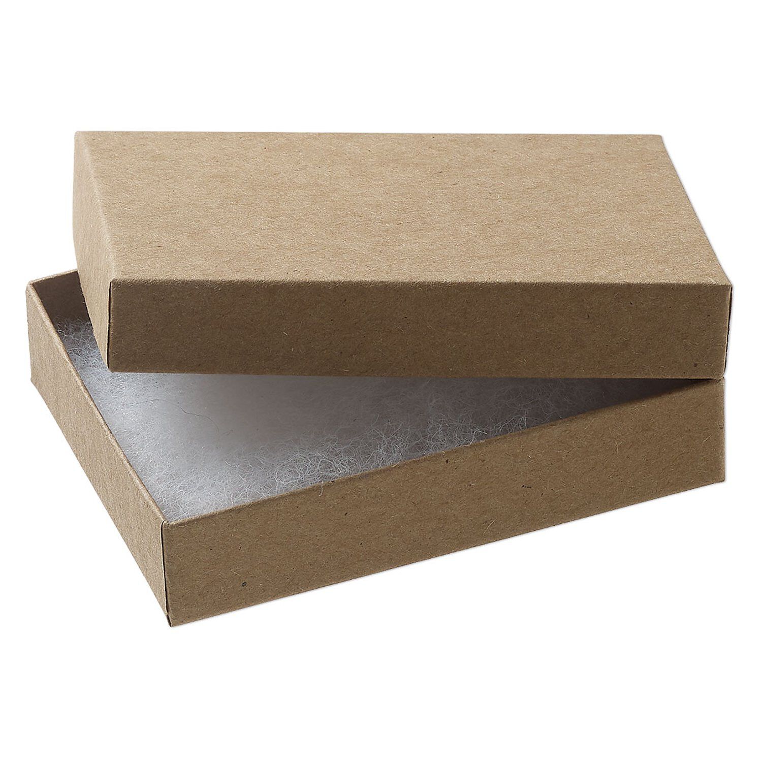 Protect jewelry designs and the Earth at the same time with biodegradable cardboard boxes. Kraft paper covers each lightweight yet sturdy box, which includes a removable jeweler's "cotton" cushion. Although “cotton-filled boxes” is the common industry term, the “cotton” is actually polyester, a standard material that has been used in the industry for years. These boxes are optimized for shipping efficiency, helping you save on costs—especially with smaller batches. Great for jewelry presentation and gift-giving. Made in the USA.