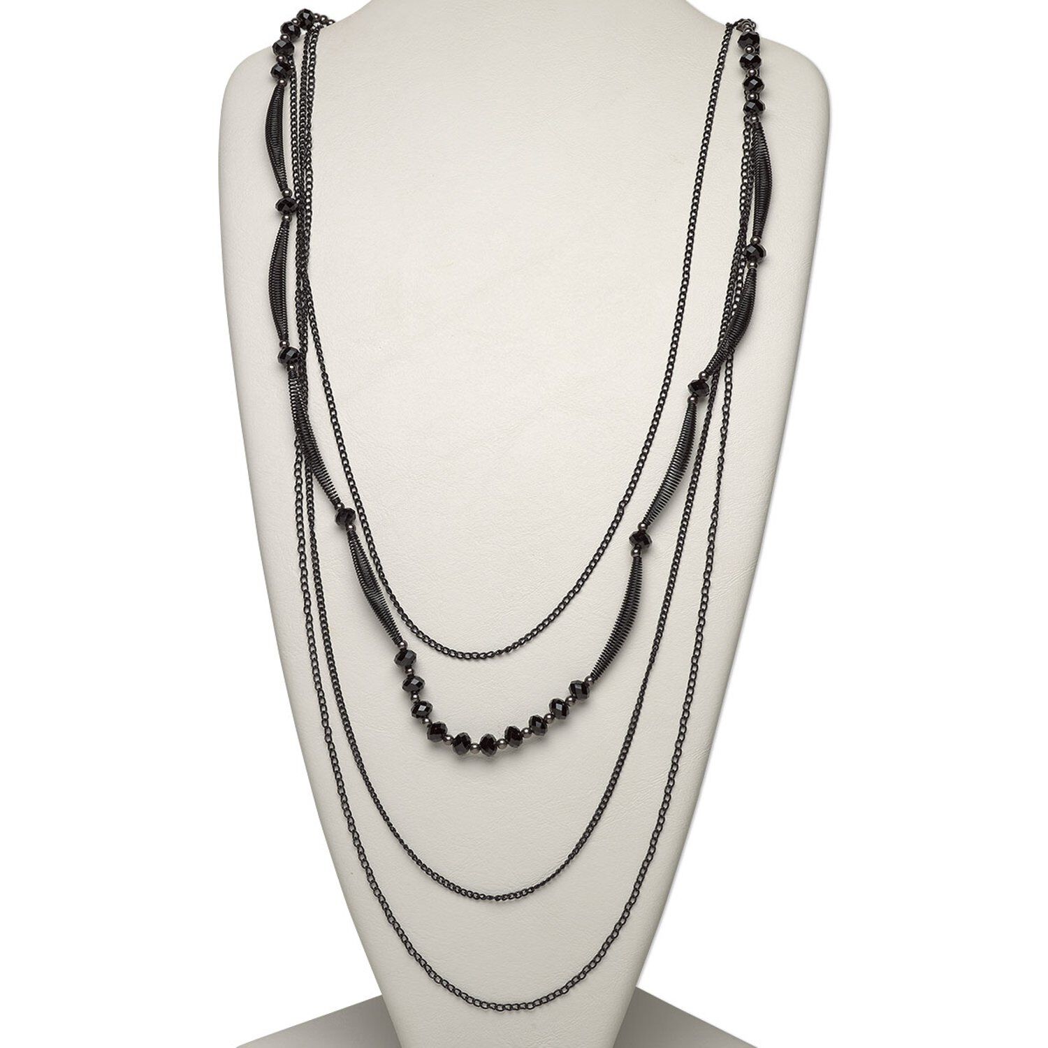 Necklace, multi-strand, glass / plastic / gunmetal-finished steel, black, round and faceted rondelle, 30 inches with a 42-inch drape and lobster claw clasp. Sold individually.