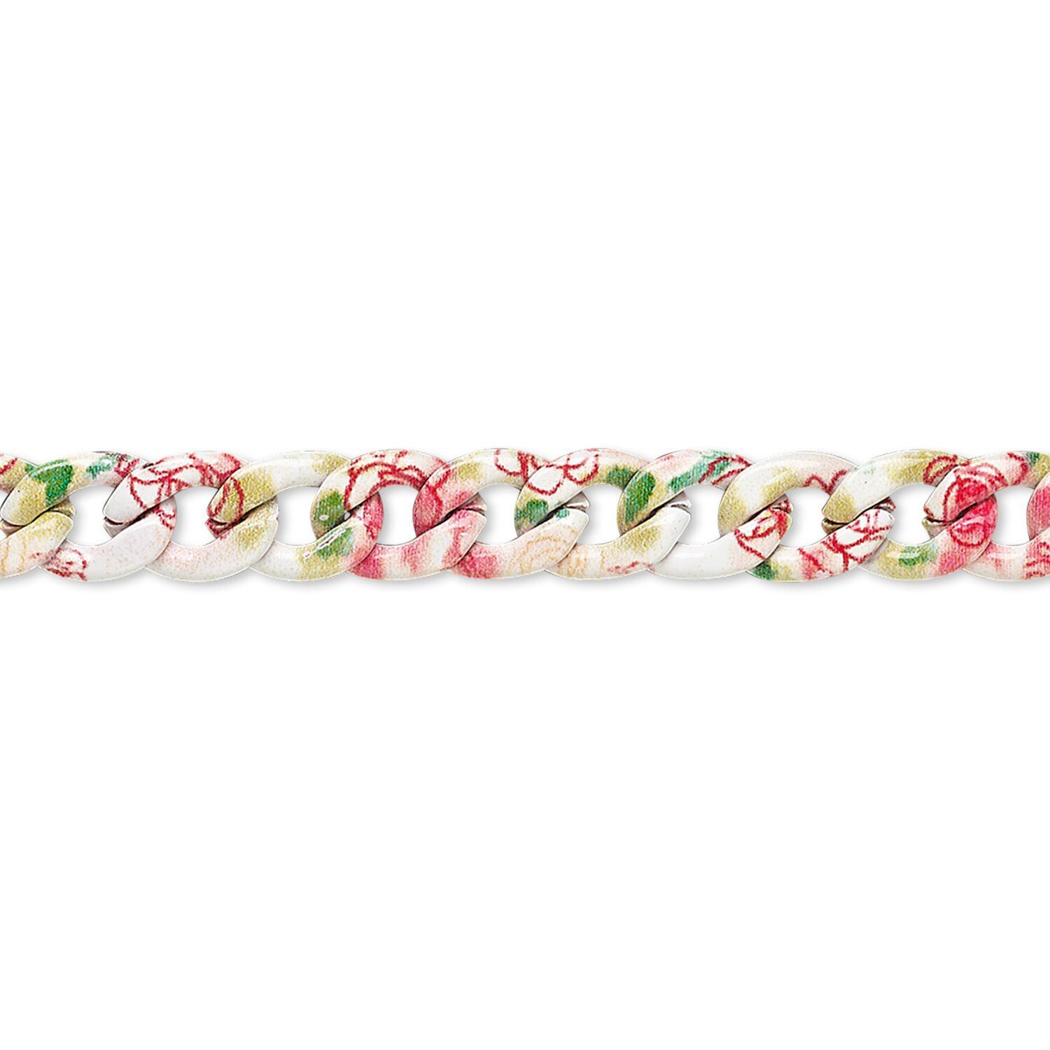 Chain, painted steel, multicolored, 11x8mm twisted curb with flower pattern, 18 inches with lobster claw clasp. Sold individually.