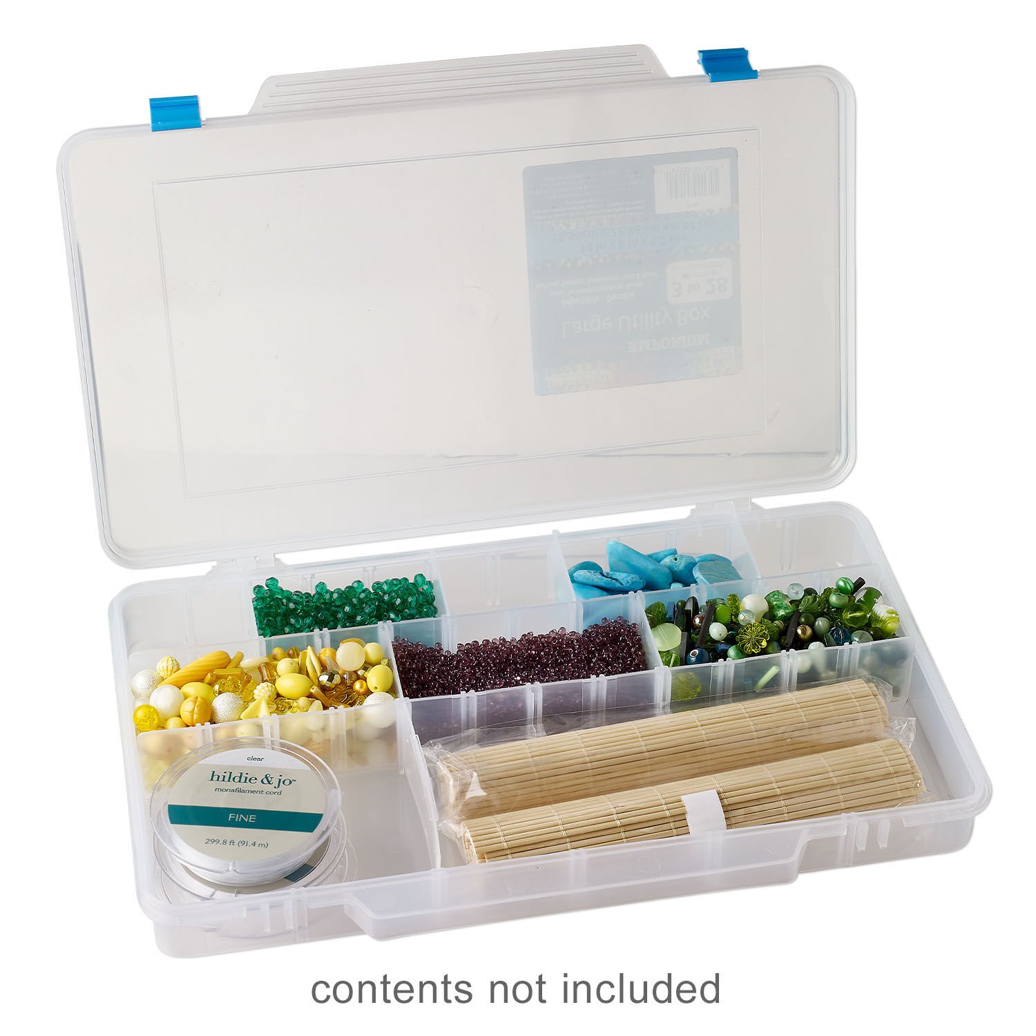 Keep your beads and findings neat, secure, and easy to access with these durable, portable organizers made from non-toxic polypropylene. Each organizer features a crystal-clear design so you can see contents at a glance, plus strong molded hinges and secure closures to keep everything in place while you work or travel. Includes adjustable dividers for 3 to 28 compartments and built-in handle for easy carrying. Made in the USA.