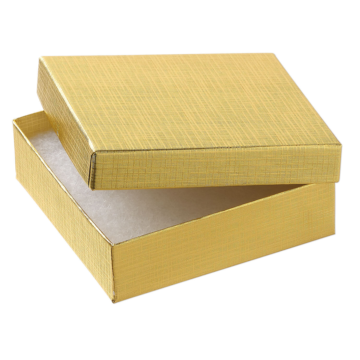 Box 1pkg6, paper and "cotton" filled, gold, 3-1/2 x 3-1/2 x 1 inches square