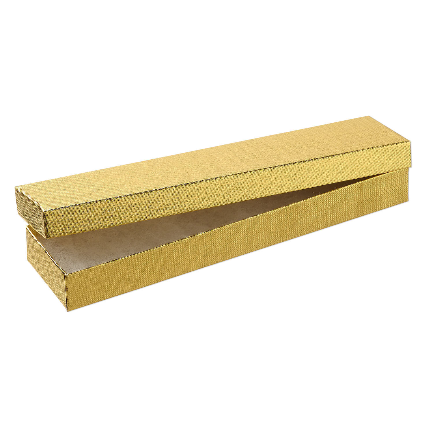 Box 1pkg6, paper and "cotton" filled, gold, 8 x 2 x 7/8 inches rectangle