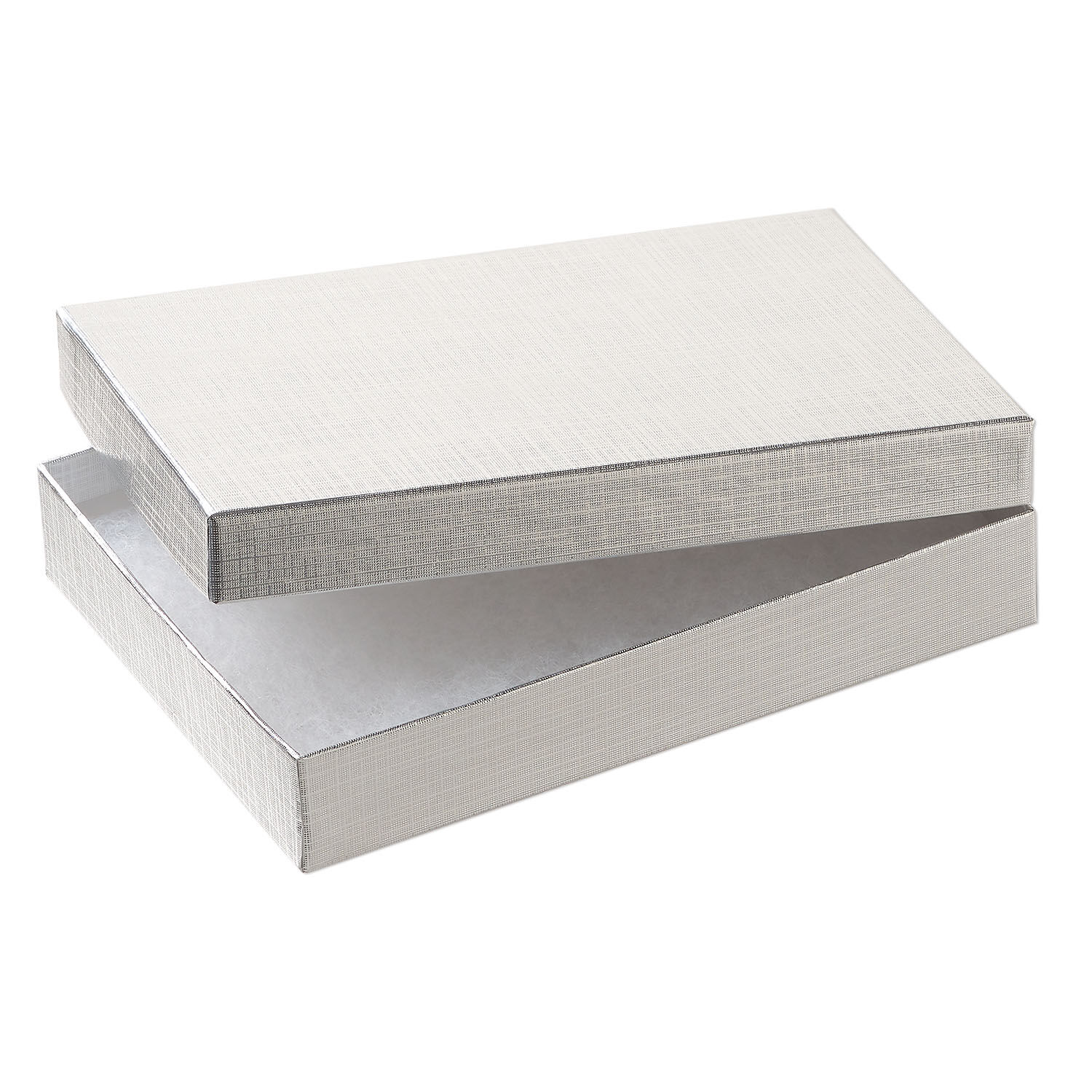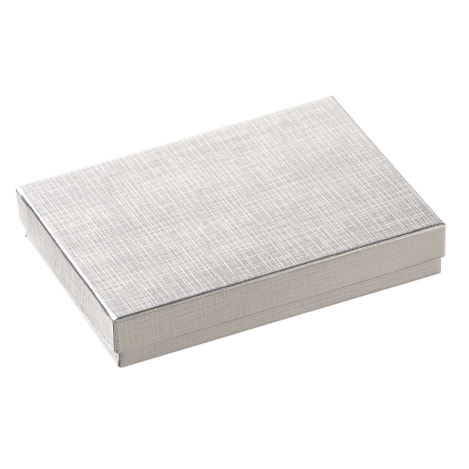 Box 1pkg4, paper and "cotton" filled, silver 5-1/4 x 3-3/4 x 7/8 inches rectangle