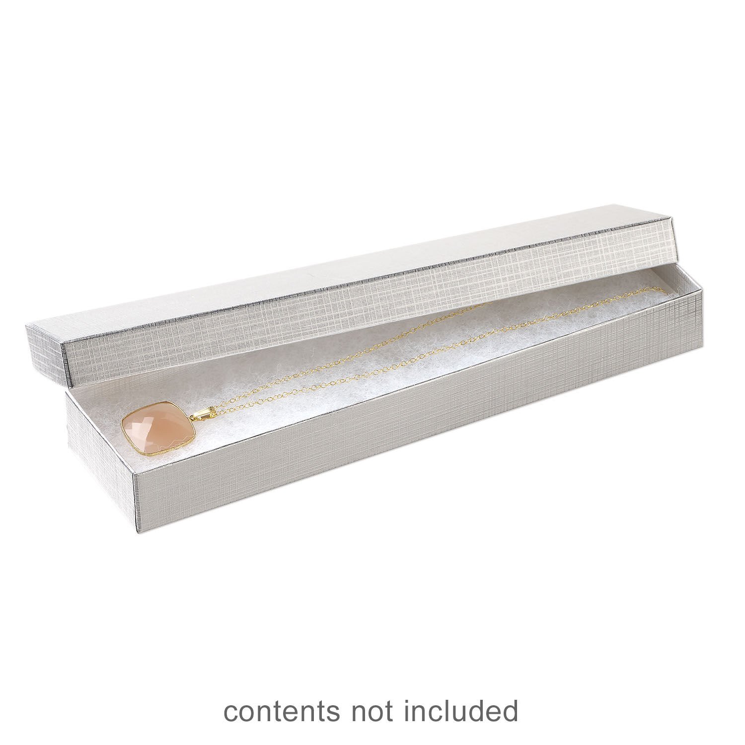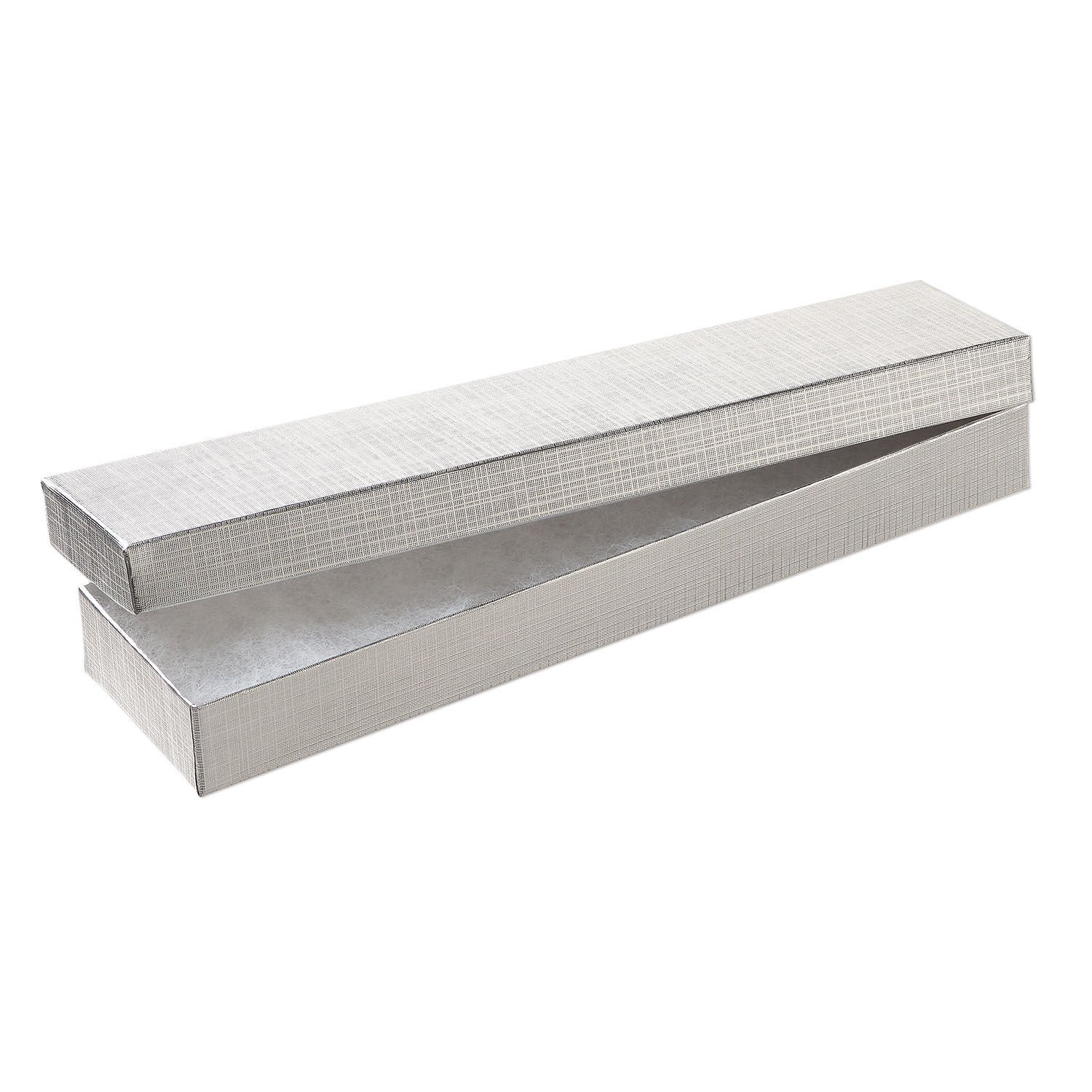 Box 1pkg6, paper and "cotton" filled, silver 8 x 2 x 7/8 inches rectangle