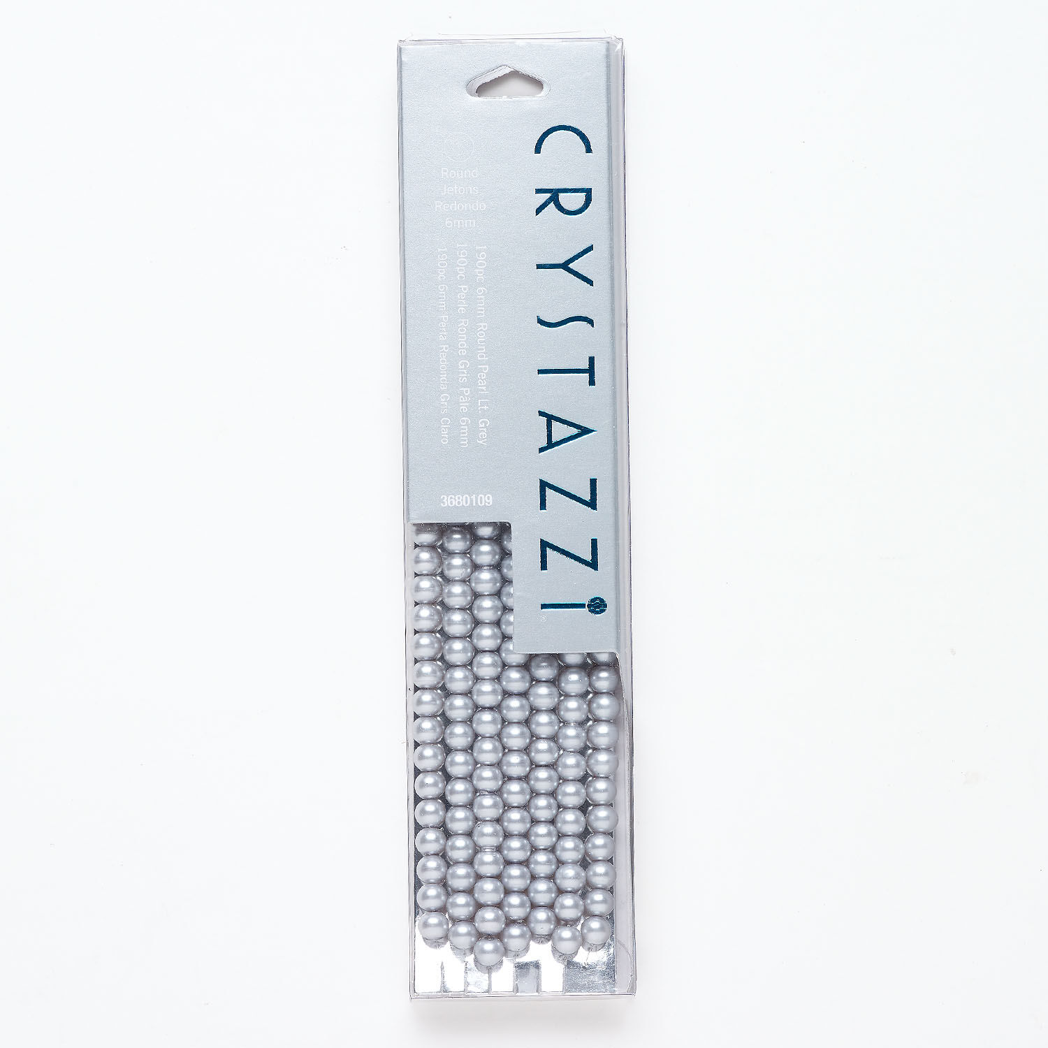 Bead, crystal pearl 1pkg190, light grey, 6mm round.