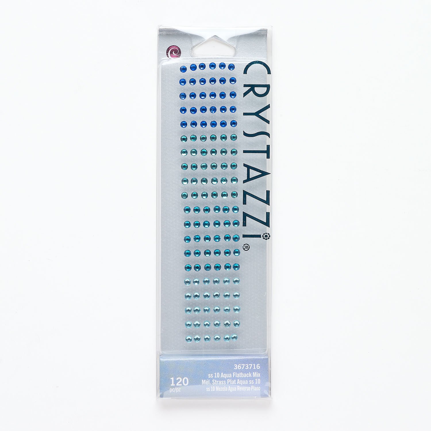 Flat back mix 1pkg120, glass, multi-blue foil back, 2.70-2.90mm round, SS10.