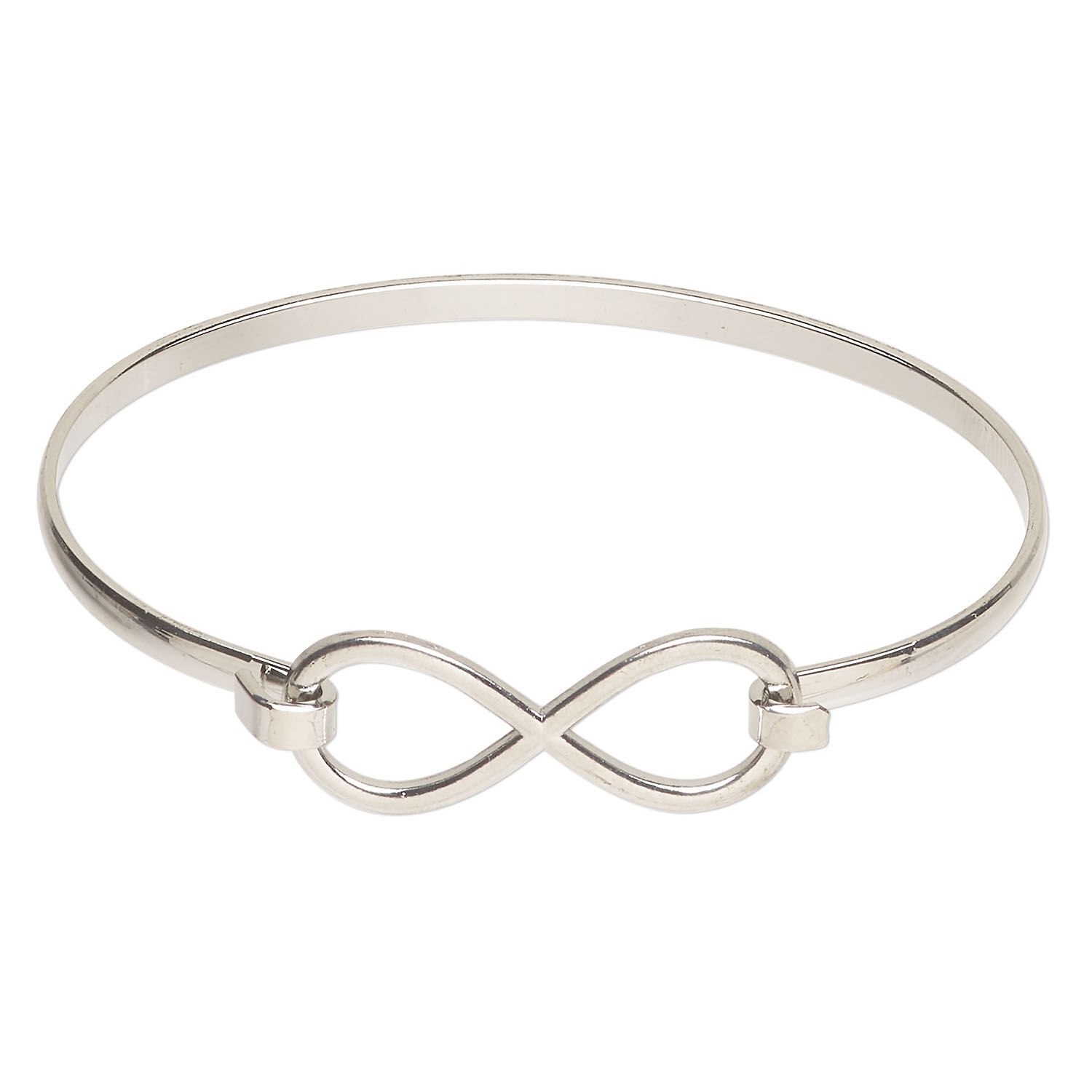 Bracelet, bangle 1pkg1, silver-finished steel, 15mm infinity, 7 inches with hook closure.