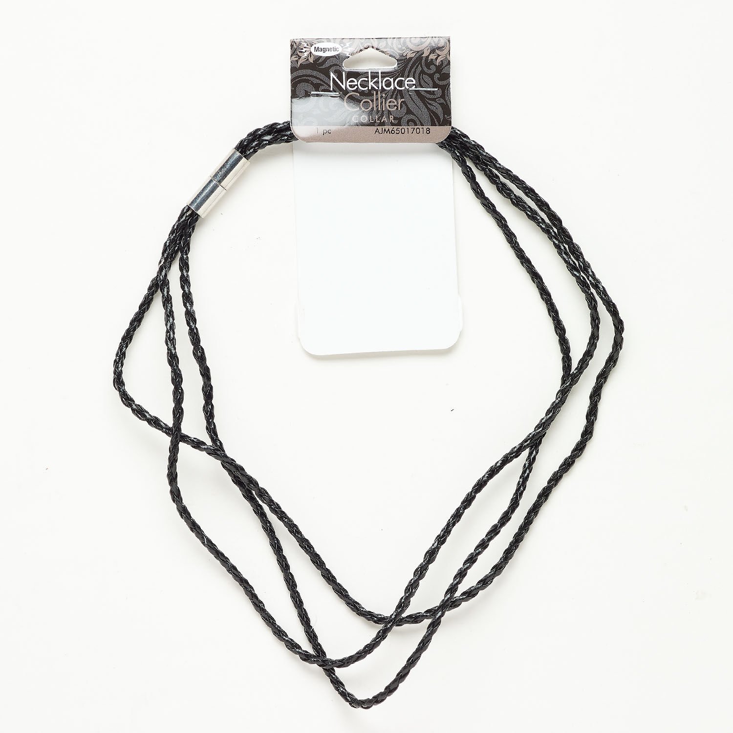 Necklace 1pkg1, 3-strand, faux leather / silver-finished "pewter" (zinc-based alloy), black, 8mm braided, 15-1/2 to 16 inches.