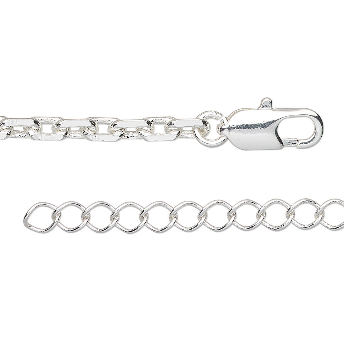 Ready-to-wear silver-plated brass chain comes with lobster claw clasp and 1 to 3 inches extender chain that can be used to adjust length and drape. Colors, shapes and sizes may vary in each lot.