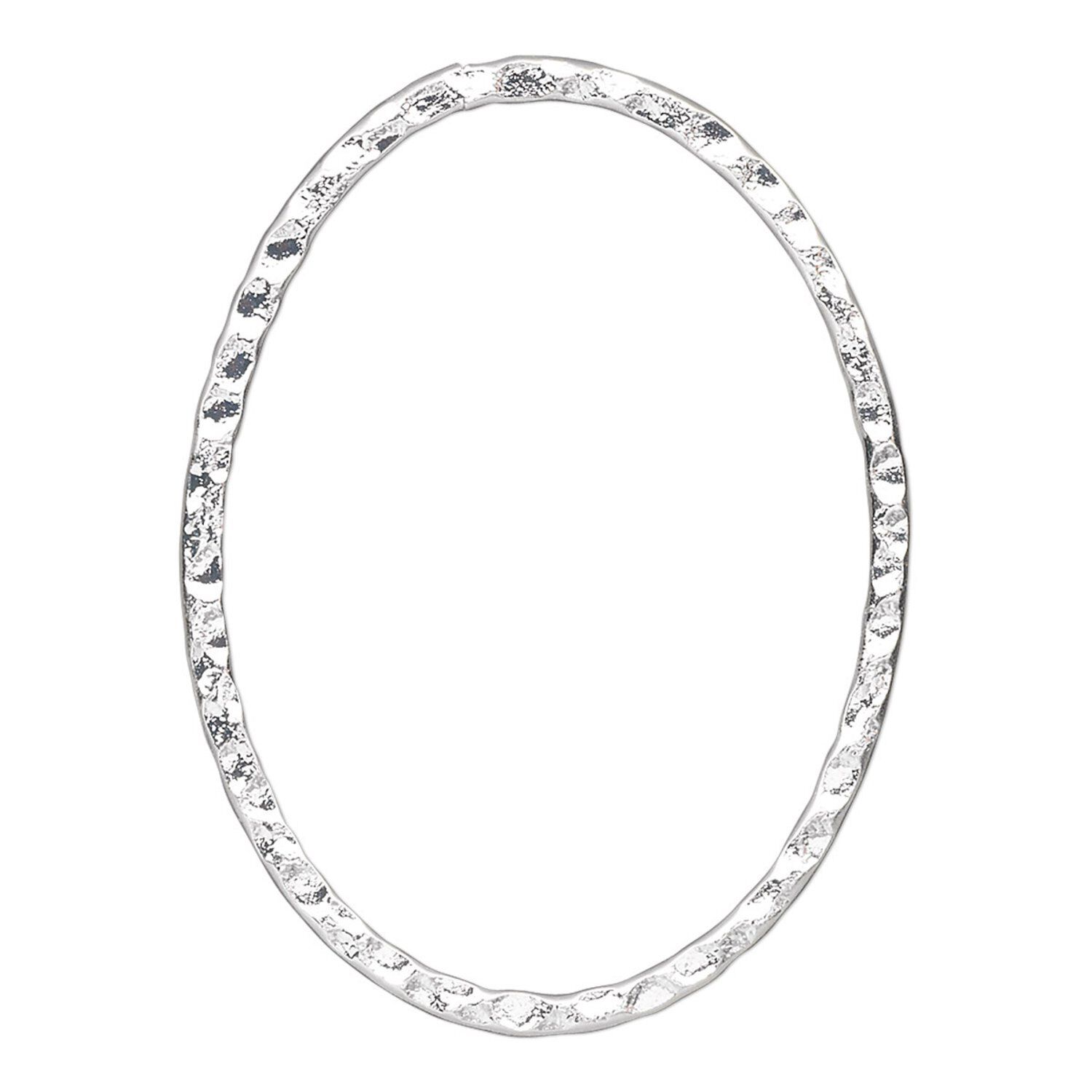 Focal, silver-plated steel, 40x30mm double-sided hammered open oval. Sold per pkg of 6.