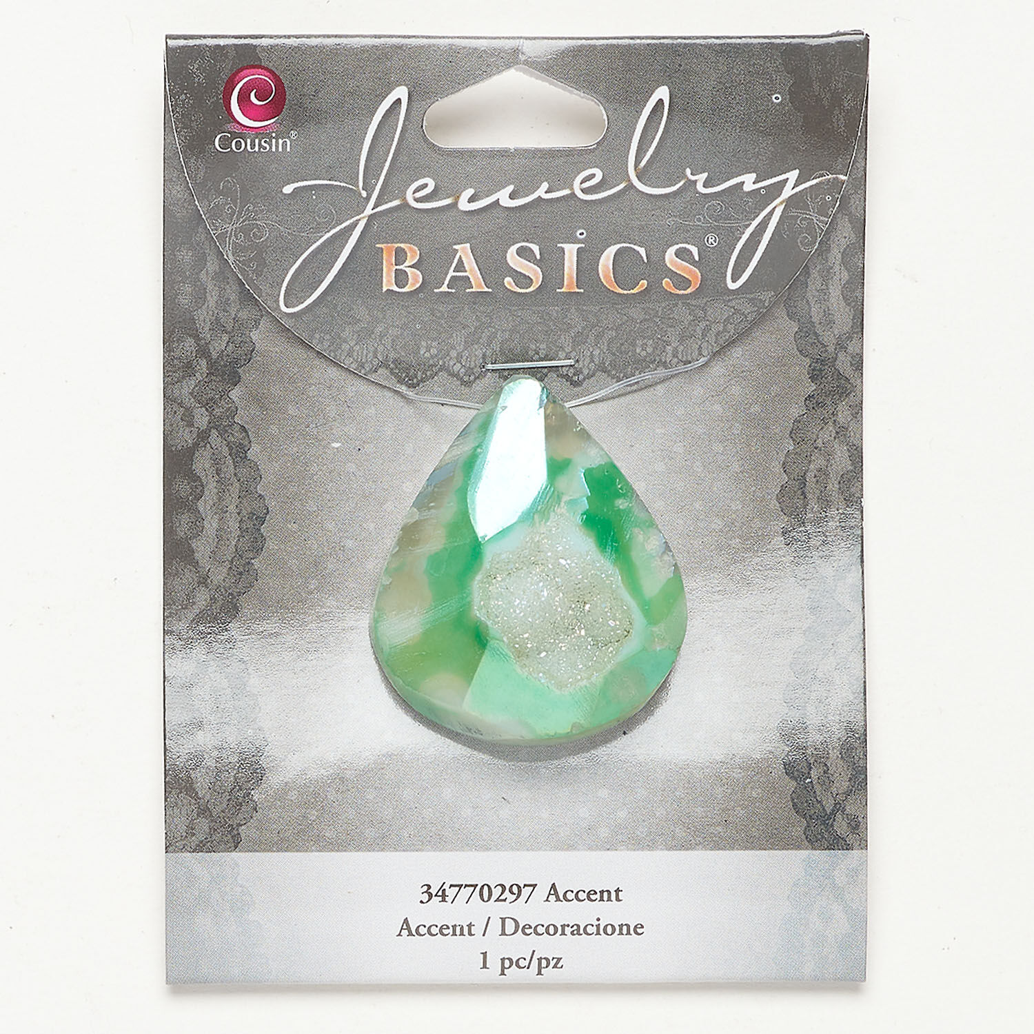 Focal 1pkg1, "druzy" glass, green and clear AB, 36x26mm-39x33mm top-drilled teardrop.