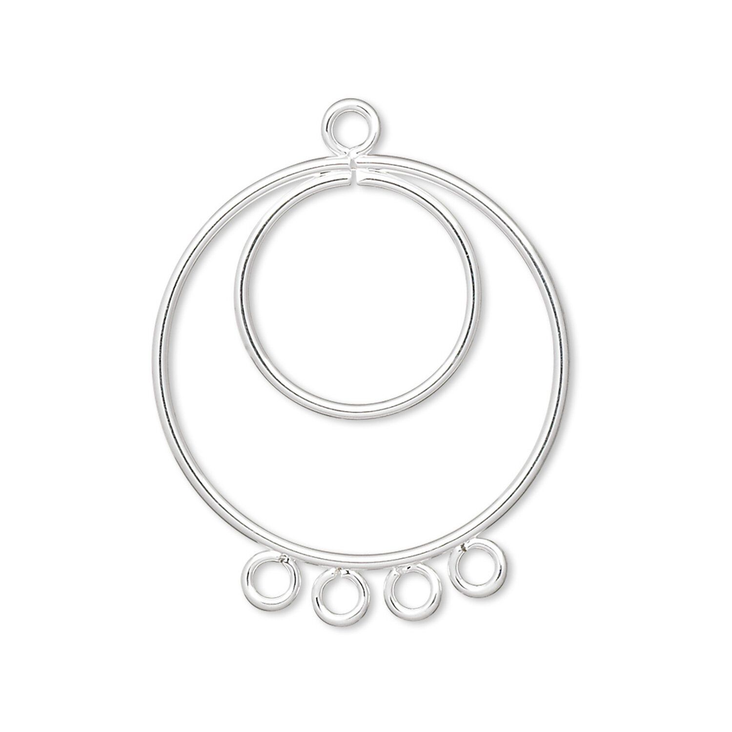Drop, silver-plated steel, 25mm double hoop with 15mm inside hoop, 4 loops. Sold per pkg of 10.