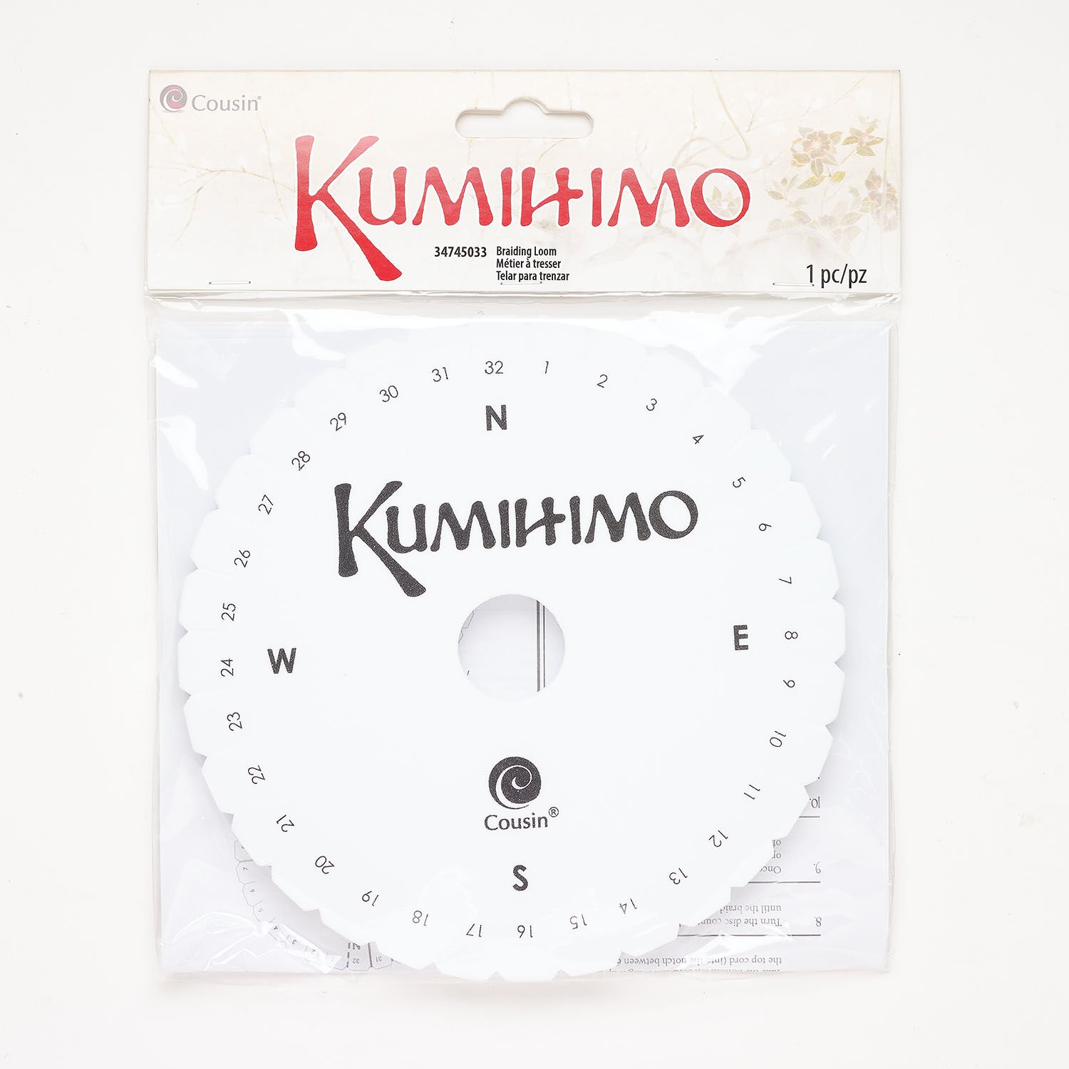 Kumihimo disk 1pkg1, EVA foam, white and black, 6 inch single-sided round with 32 slots, 3/8 inch thick.