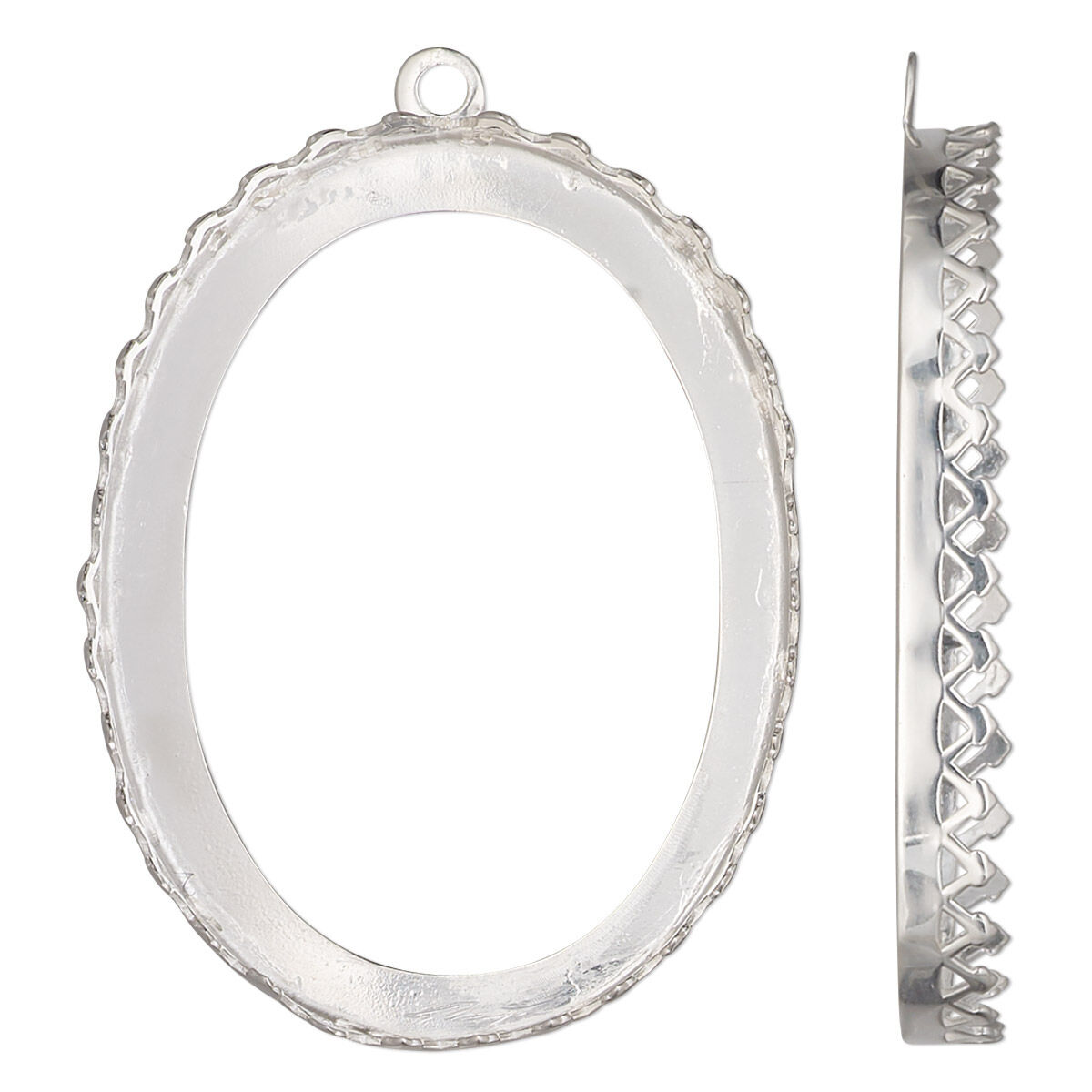 Drop with custom-designed mounting exclusive to Fire Mountain Gems and Beads accommodates a 40x30mm oval cabochon. Bezel settings let you customize your jewelry with stones set using bezel pusher and roller for a professional look. Anti-tarnish coating preserves and protects the shine of sterling silver.