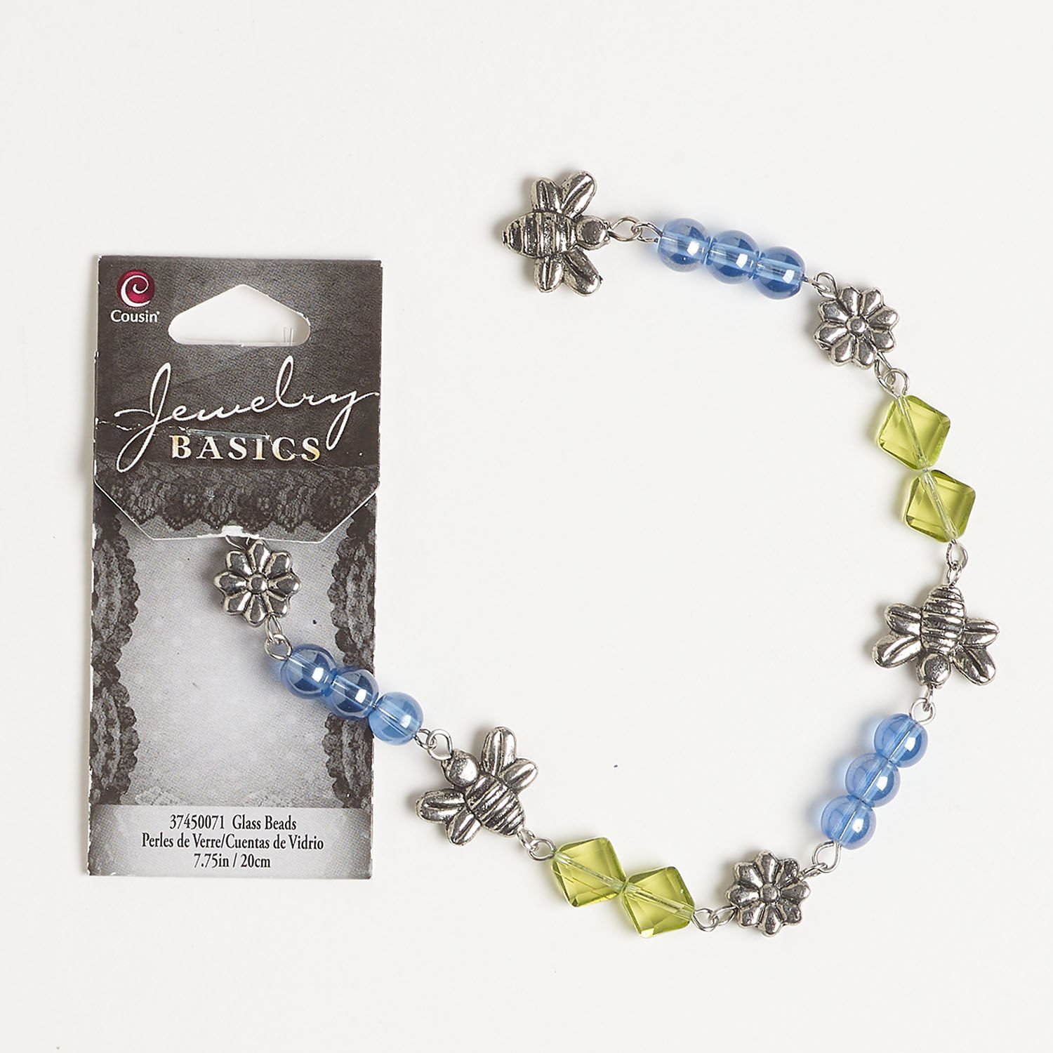 Component 1pkg1, antique silver-finished brass and steel / glass, blue and green, 5mm-14x12mm mixed shapes, 7-1/2 inches.