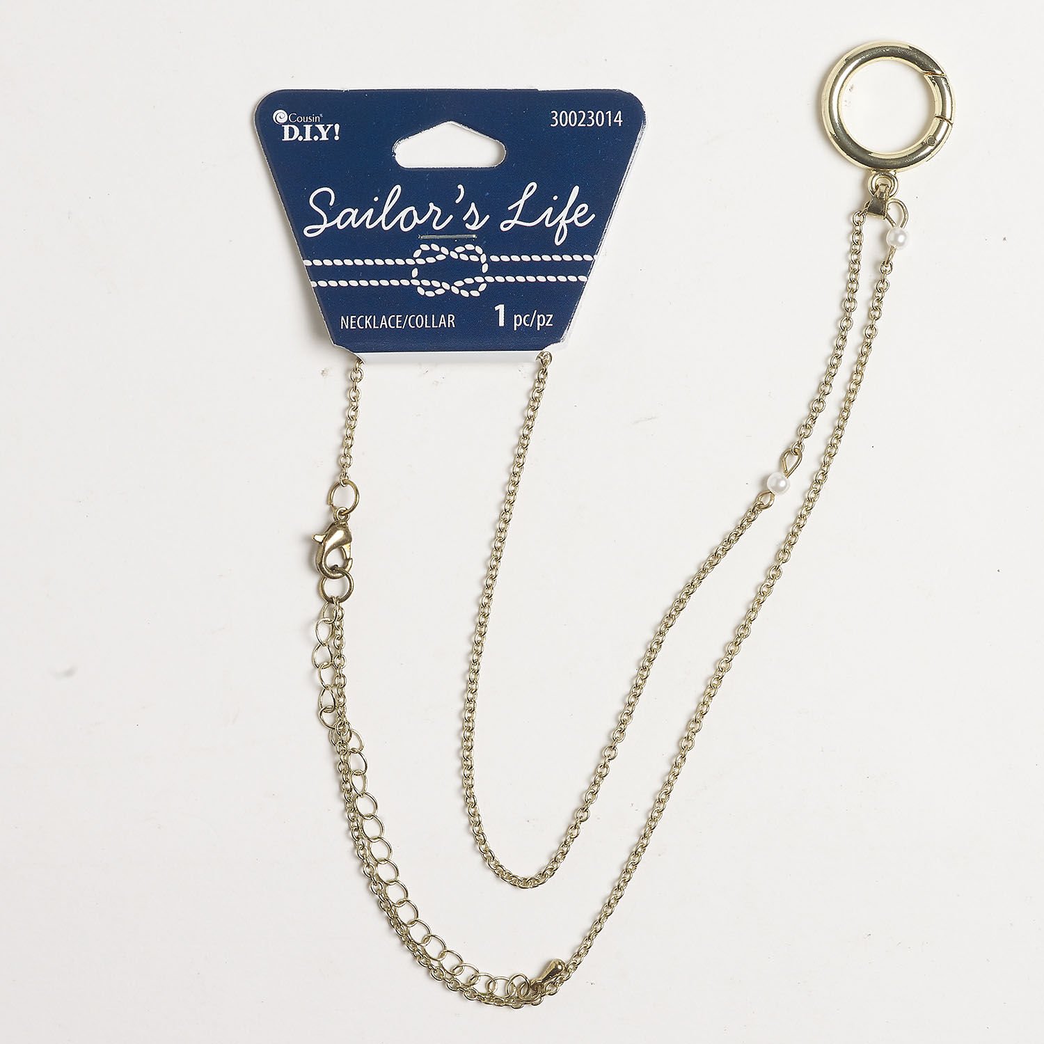 Necklace, 1pkg1, gold-finished steel and acrylic, 22mm round hinged clip with acrylic pearl accents / lobster claw clasp, 19 inches.