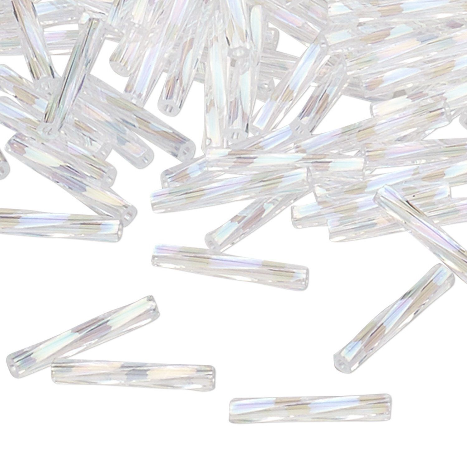 Bead, Miyuki, bugle bead, glass, pkg/250 g, 12x2mm center-drilled twisted, transparent pearl (TW-250).