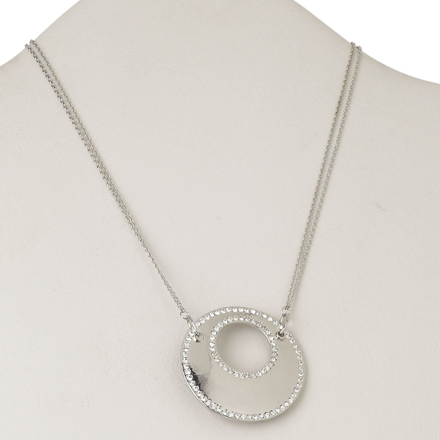 Necklace, 2-strand, imitation rhodium-finished "pewter" (zinc-based alloy) and brass and/or steel/Czech glass rhinestone, clear, 42mm round go-go with lobster claw clasp and 3-1/2 inch extender chain. Sold individually.