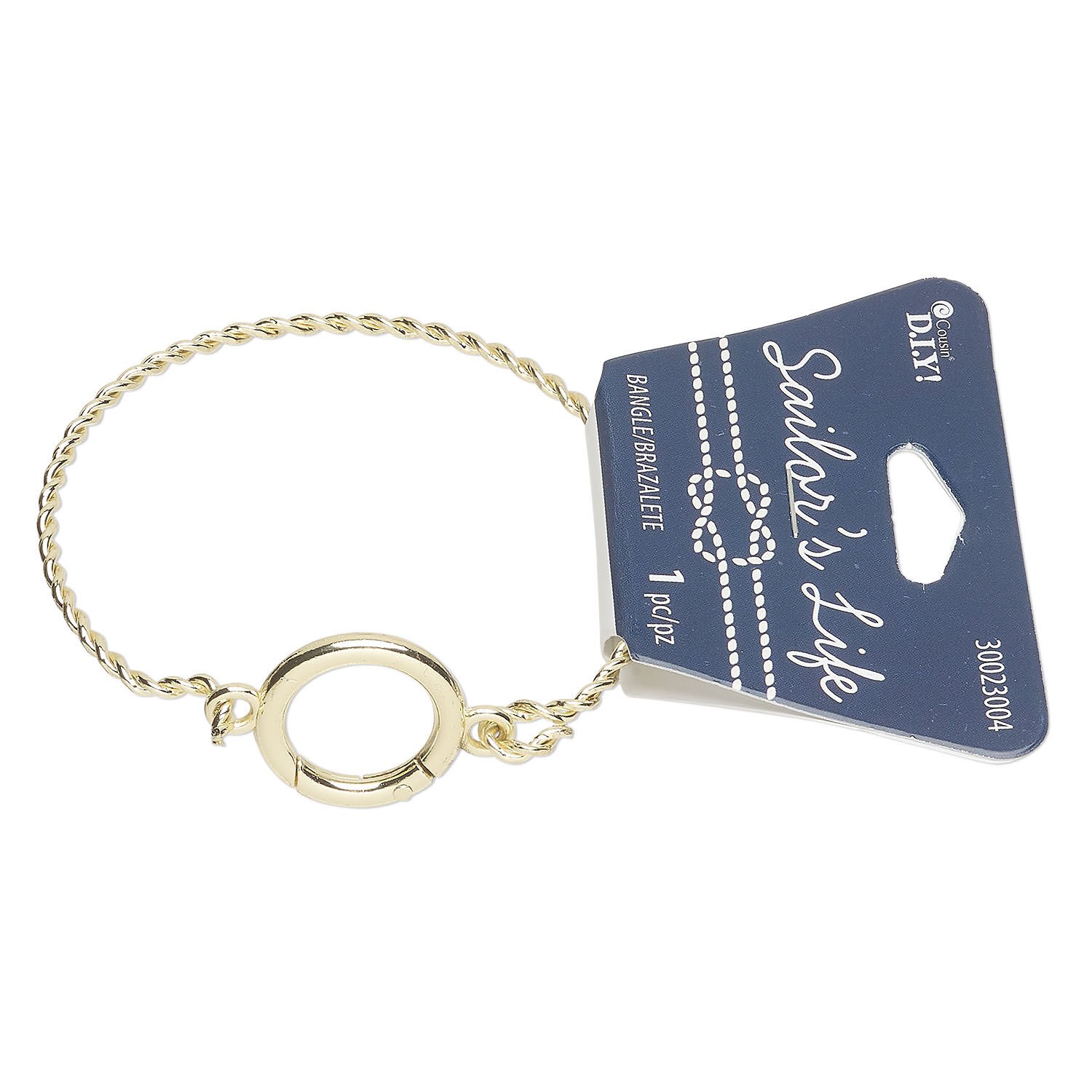 Bracelet, bangle 1pkg1, gold-finished brass and steel, 7 inches with 2.5mm twisted band and 22mm round hinged clasp.