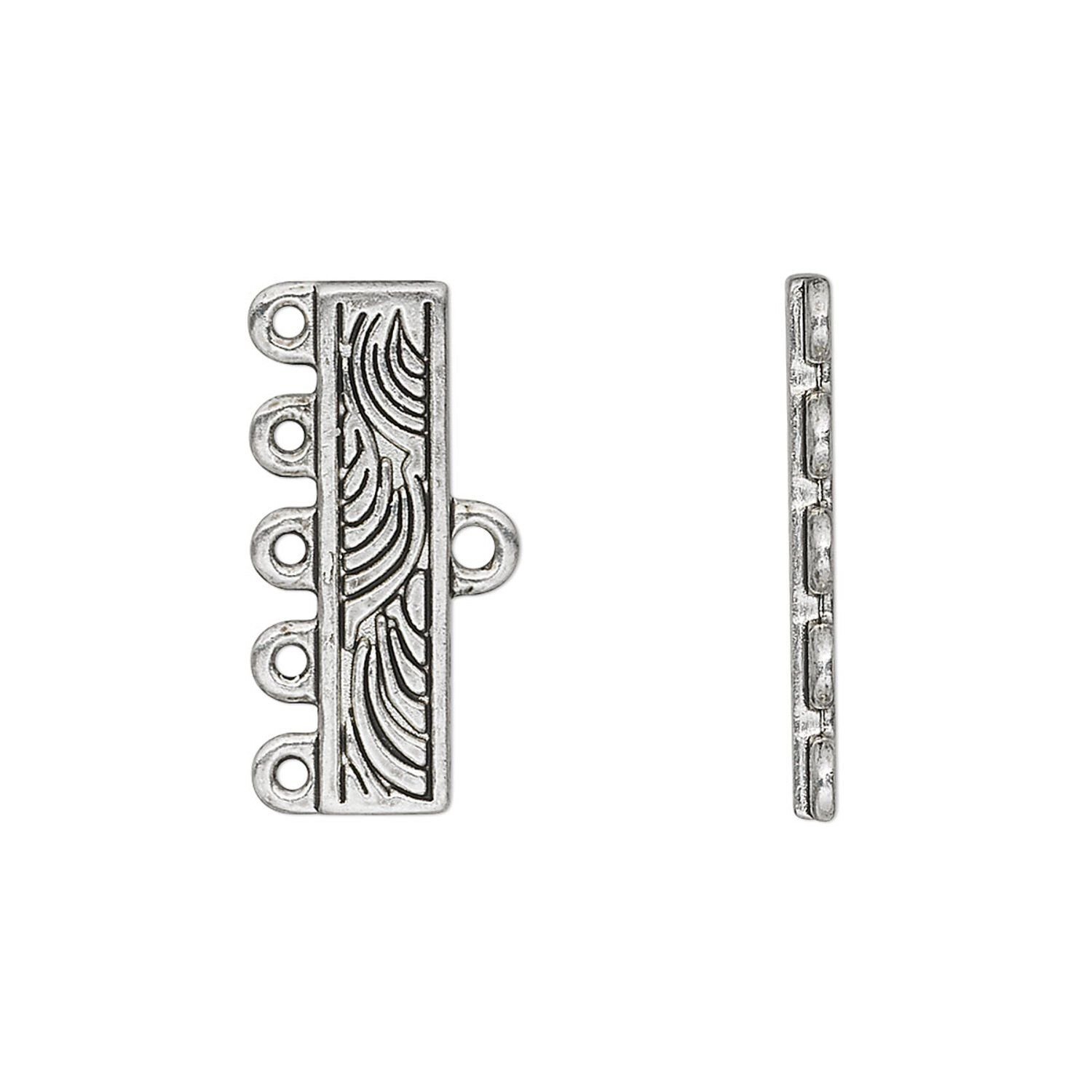End bar, antique silver-finished "pewter" (zinc-based alloy), 21x5mm fancy rectangle, 5-strand. Sold per pkg of 10.