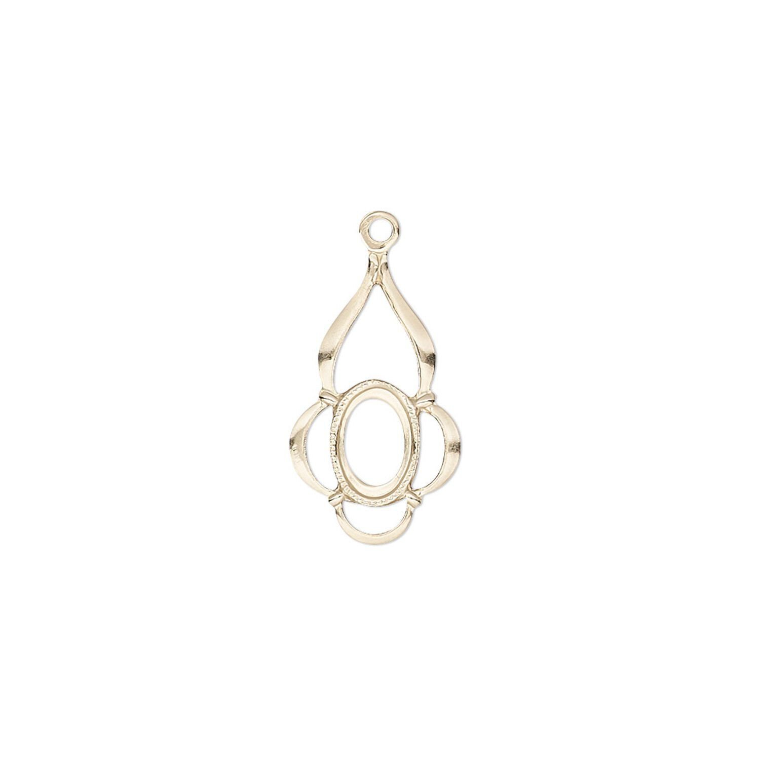 Drop, glue-in, 14Kt gold-filled, 16.5x10mm fancy oval with 6x4mm oval setting and open back. Sold individually.