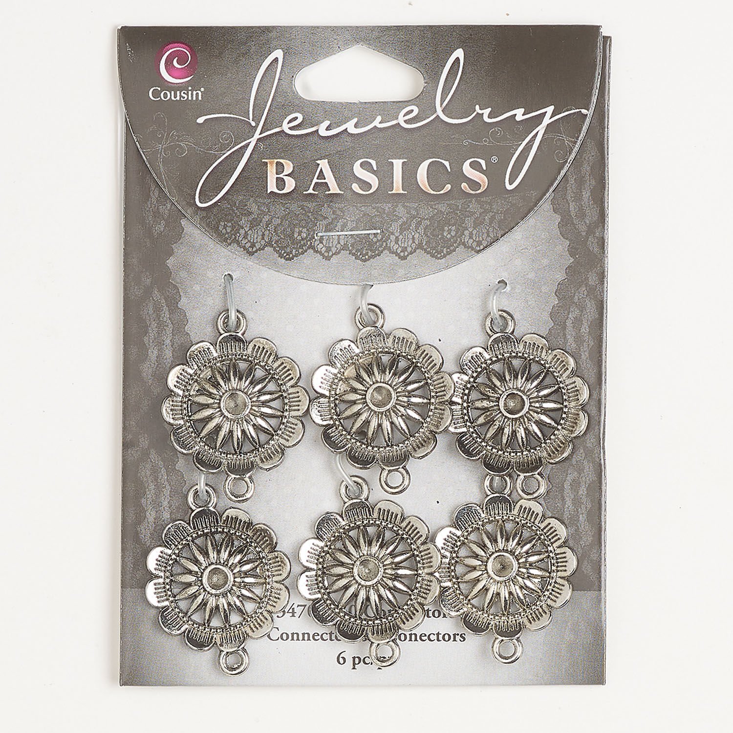 Link 1pkg6, antique silver-finished brass, 21mm single-sided flower.