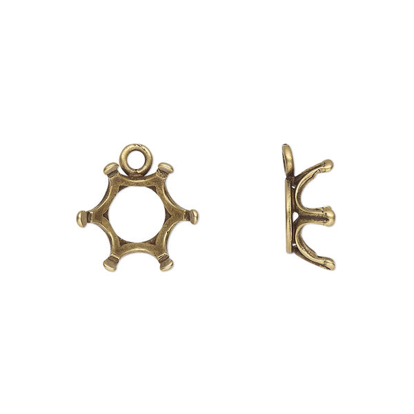 Drop, JBB Findings, antique brass-plated brass, 13mm round with open back and 6-prong SS45 chaton setting. Sold per pkg of 2.