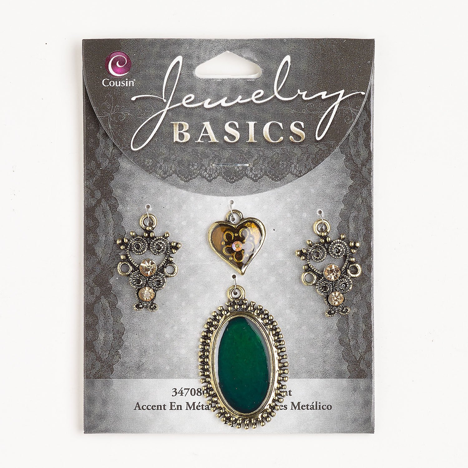 Focal and drop assortment 1pkg4, antique gold-finished brass / enamel / glass, brown / green / peach, assorted sizes and shapes.