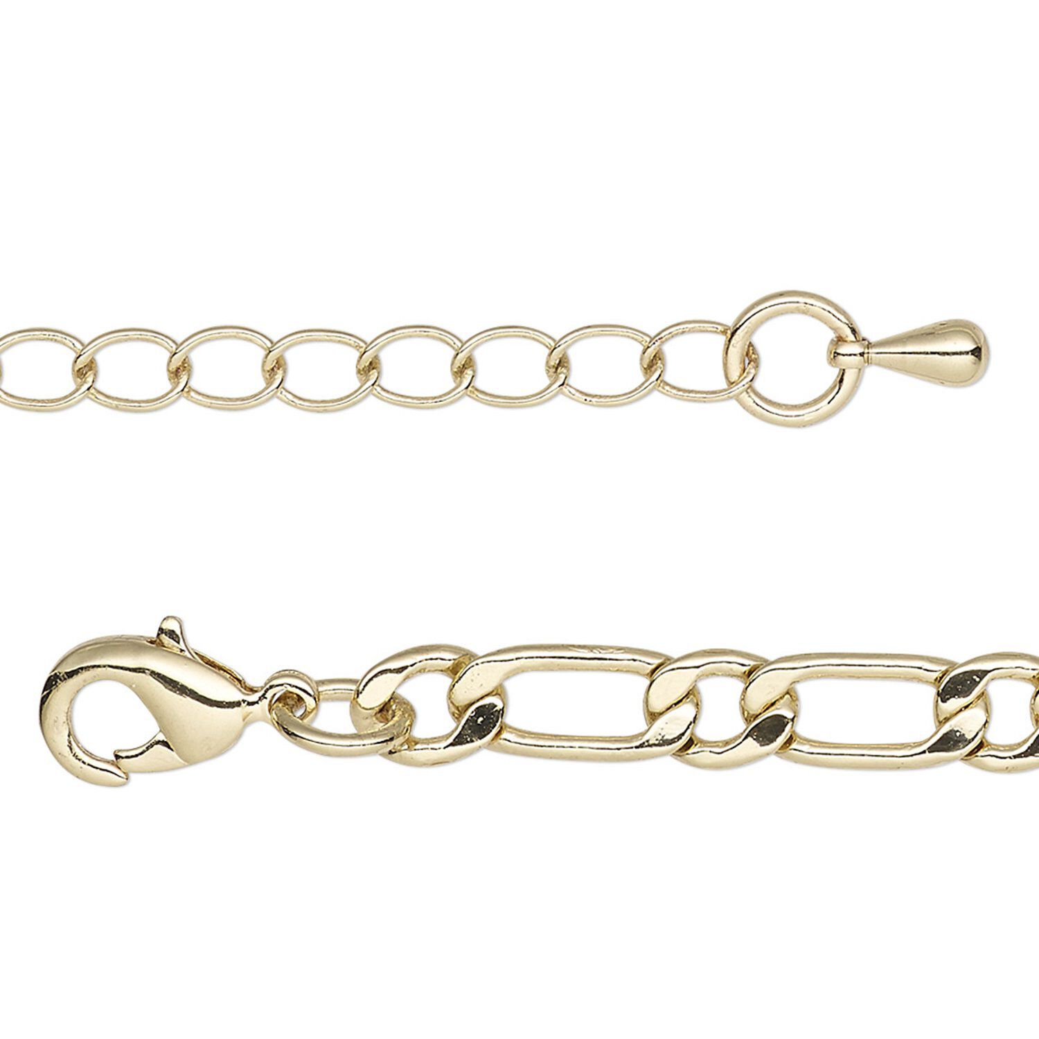 Flat oval brass chain with gold plating offers the look of gold at a lower cost. Bracelet features 2-inch extender chain with lobster claw clap for secure closure.