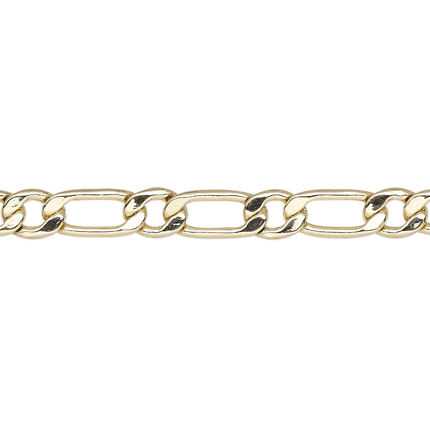 Flat oval brass chain with gold plating offers the look of gold at a lower cost.